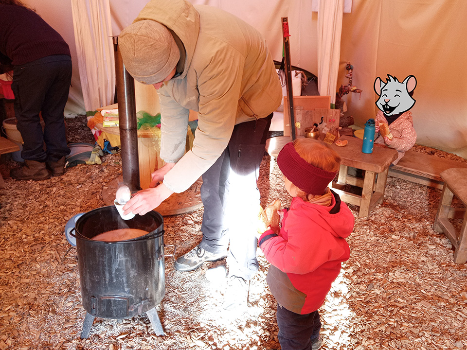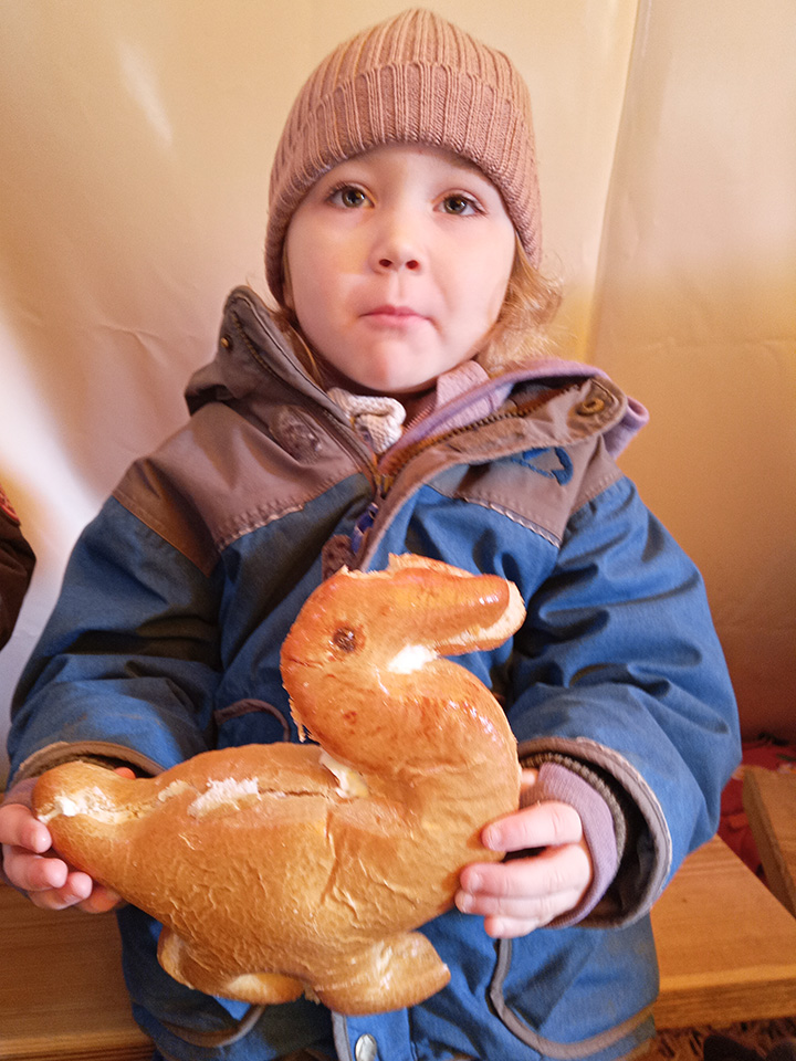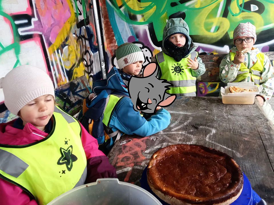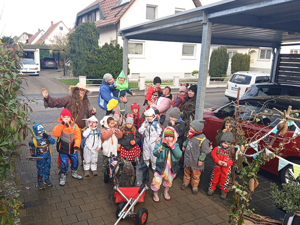 Am Fasnachtsfreitag kamen die Pflumendrucker zu Besuch, brachten Brezeln mit und feierten mit uns eine ausgelassene Party voller Tanz, Gesang und fröhlicher Bewegung. Am Rosenmontag zogen wir verkleidet durchs Dorf und wurden an verschiedenen Stationen von den Eltern liebevoll mit Leckereien versorgt. Am Fasnachtsdienstag entstand aus den gesammelten Eiern ein besonderes Frühstück: Rührei – frisch und lecker!