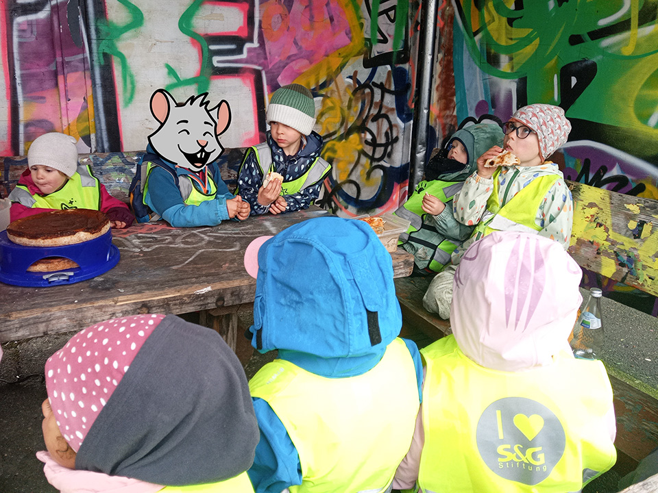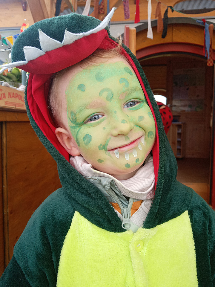 Am Schmutzigen Donnerstag schalteten Einhörner, Ritter, Hexen und Co. direkt in den Partymodus! In unserer Gulaschkanone wurden frische Berliner gebacken – herrlich duftend und richtig lecker. Auch die Tagesmäuse feierten mit uns eine kunterbunte Fasnachtsparty mit Schminken, Musik und ganz viel Gelächter. Ein besonderes Highlight war der Besuch einer Mama, die das Häs der Steinhansele aus ihrer Zunft vorstellte. Die Kinder waren begeistert – vor allem von der Maske, die sogar alle einmal ausprobieren durften.