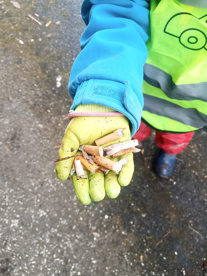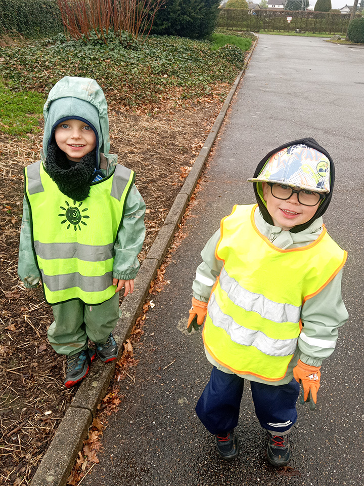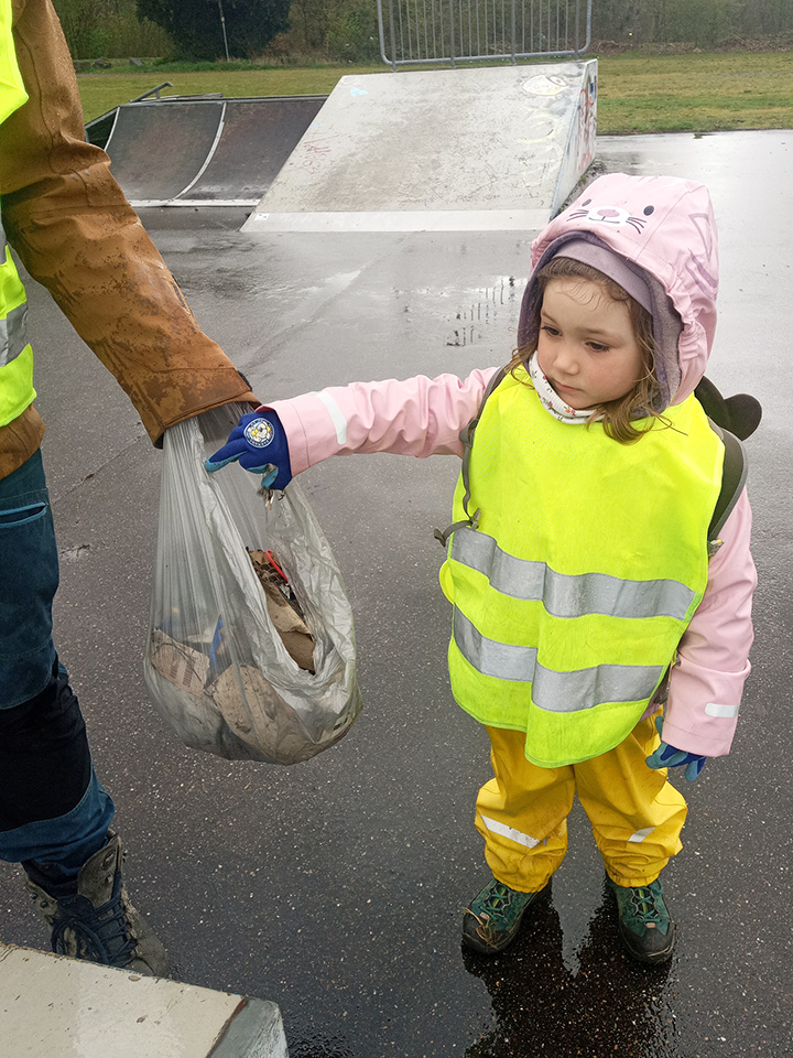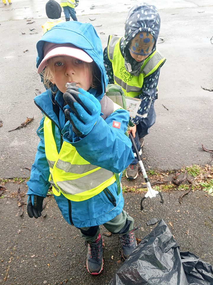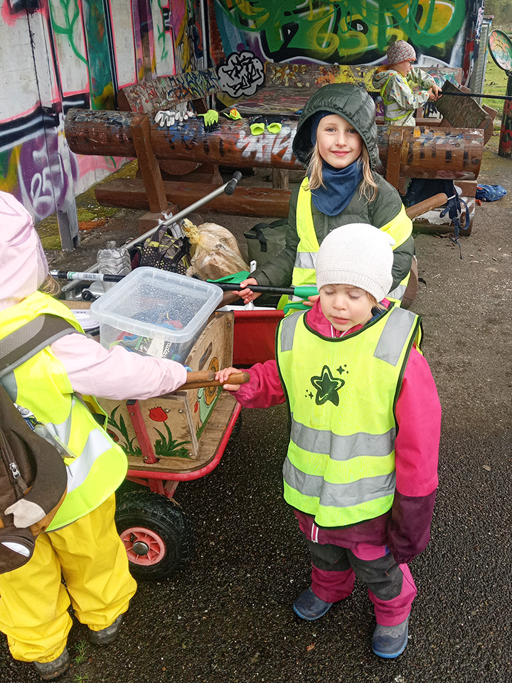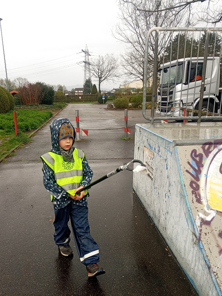 Entlang des Waldrandes ging es Schritt für Schritt voran. Aufmerksam durchkämmten die Kinder Büsche, Wege und Wiesen und entdeckten dabei so manche Überraschung. Mit wachem Blick und großem Eifer sammelten sie achtlos weggeworfenen Müll ein und halfen so, die Natur ein Stück sauberer zu machen.