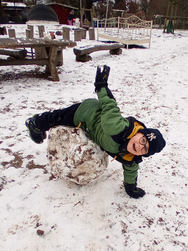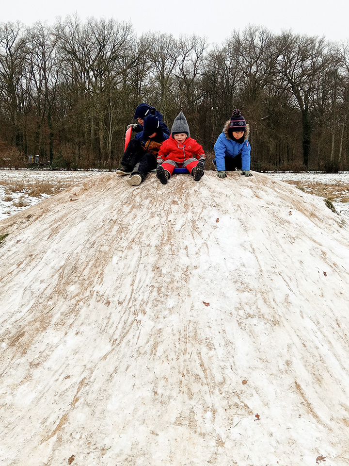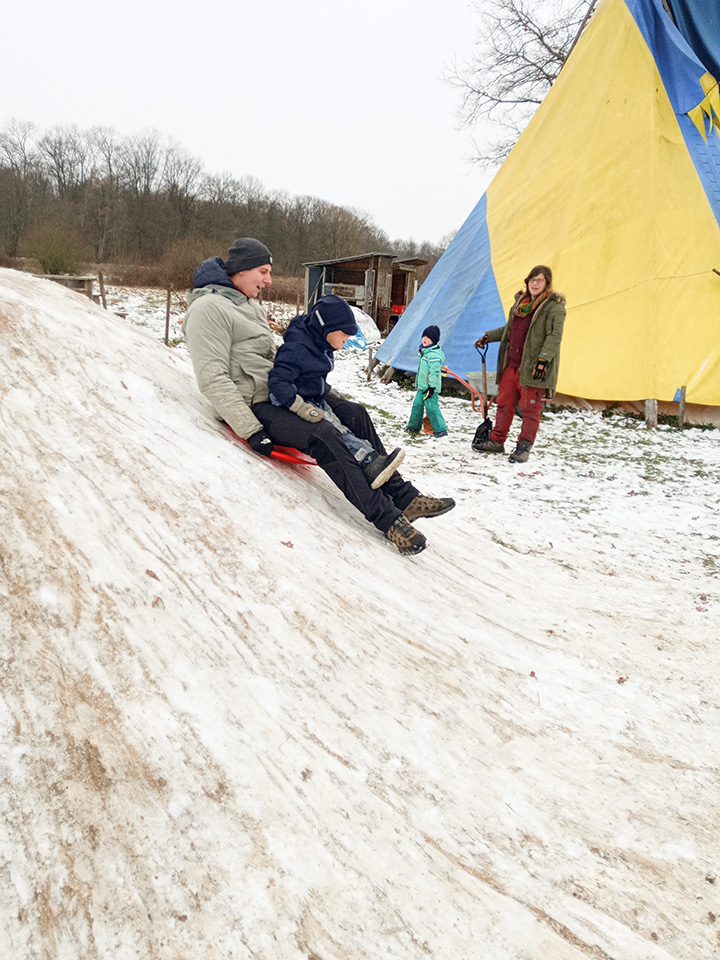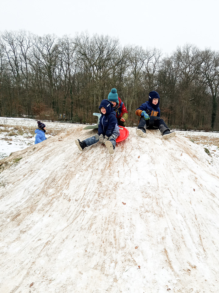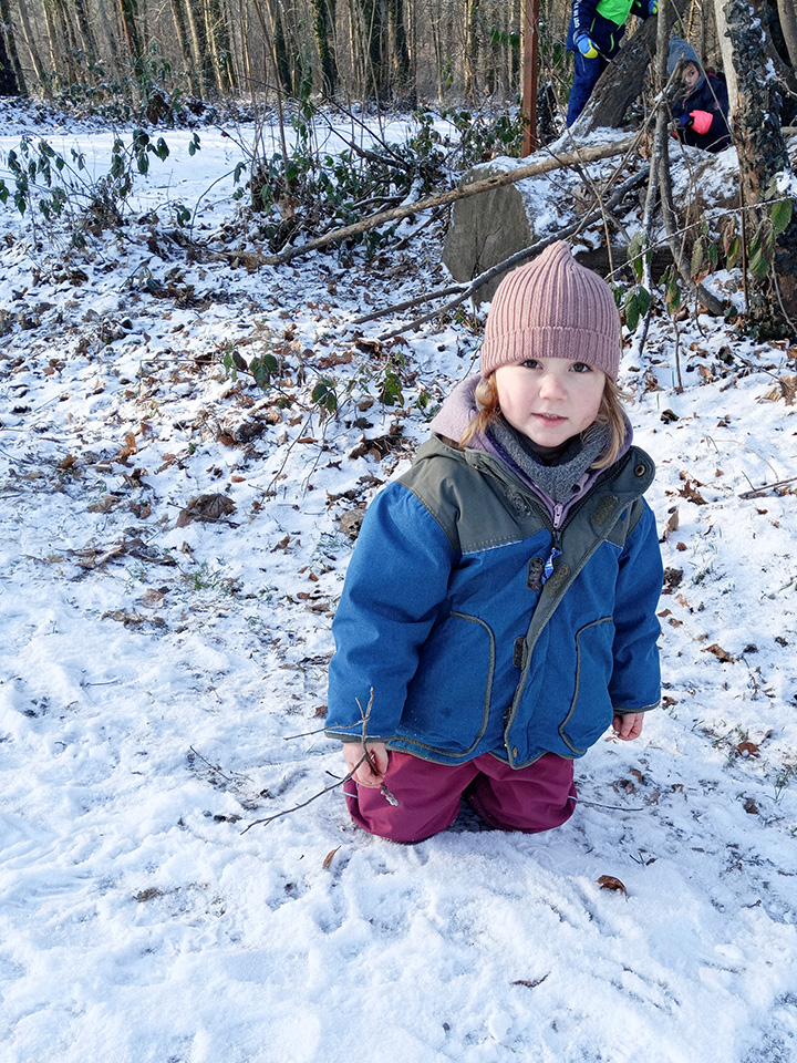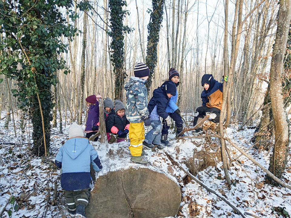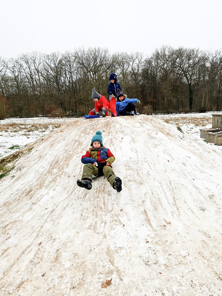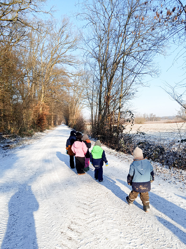 Zurück im Kindergarten wurde gerutscht, gelacht und gespielt. Unser Hügel verwandelte sich in eine Rutschbahn, auf der die Kinder mit viel Freude hinuntersausten. Zwischendurch genossen wir die klare Winterluft und die besondere Stimmung dieses Tages. Leider war der Schnee nur von kurzer Dauer – doch die Erinnerungen bleiben.