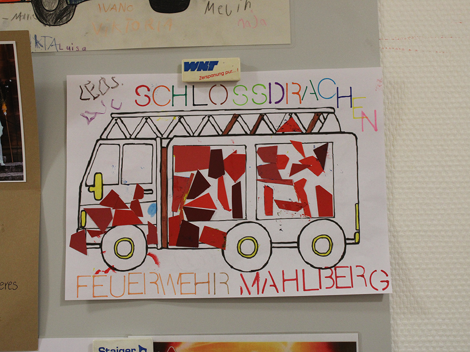 Ein weiteres Erlebnis war der Besuch der Feuerwehr: Die Schlossdrachen durften ein Feuerwehrauto von innen bestaunen, viel über den Beruf der Feuerwehrleute lernen und echte Ausrüstung entdecken. Das war spannend und beeindruckend zugleich! Unser „Raupe Nimmersatt“-Projekt hat sich im Laufe der Wochen gewandelt – genau wie unsere kleinen Schmetterlinge.