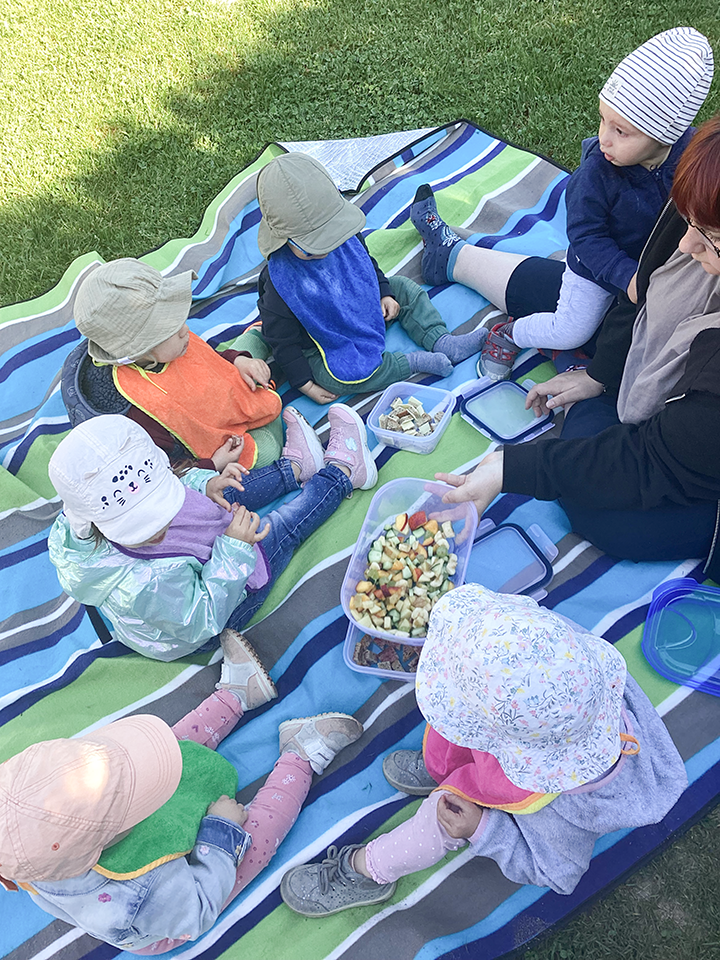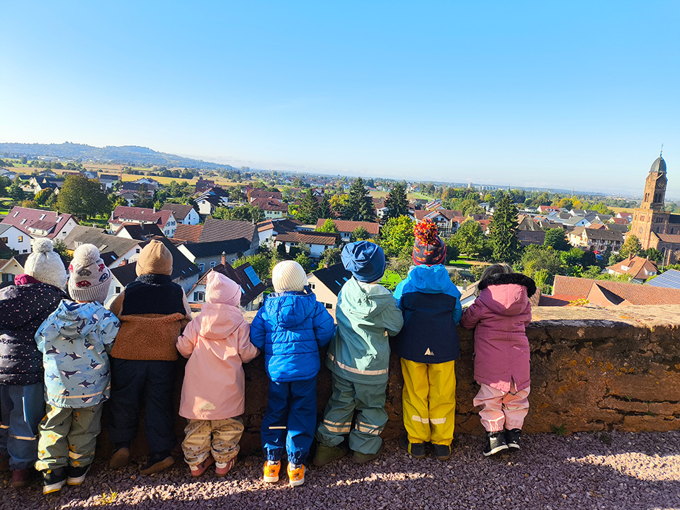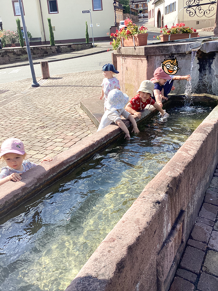 Sogar unseren Morgenkreis und das Frühstück haben wir kurzerhand mobil gemacht – draußen schmeckt’s einfach besser! Ein besonderes Highlight war unser Ausflug zum Kahlenberg in Ringsheim. Die vielen Tiere haben uns fasziniert, wir konnten einiges lernen und hatten viel Spaß – ein Tag voller schöner und lustiger Erinnerungen.