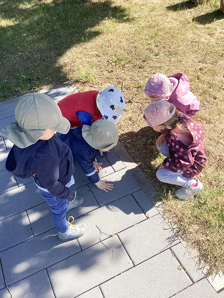 Der Sommer hat begonnen – und mit ihm viele warme, sonnige Tage, die wir in vollen Zügen im Hof genießen. Beim Planschen mit Wasser, Malen mit Kreide und kleinen Experimenten tauchen wir mit allen Sinnen in diese schöne Jahreszeit ein. Besonders neugierig sind wir auf die kleinen Wunder der Natur. Und so startete unser Sommerprojekt mit einem vertrauten Begleiter: Die kleine Raupe Nimmersatt. Gemeinsam richteten wir den Lebensraum unserer kleinen Raupen im „Lahrer Raumwunder“ ein und lernten, wie aus einer winzigen Raupe ein bunter Schmetterling wird.