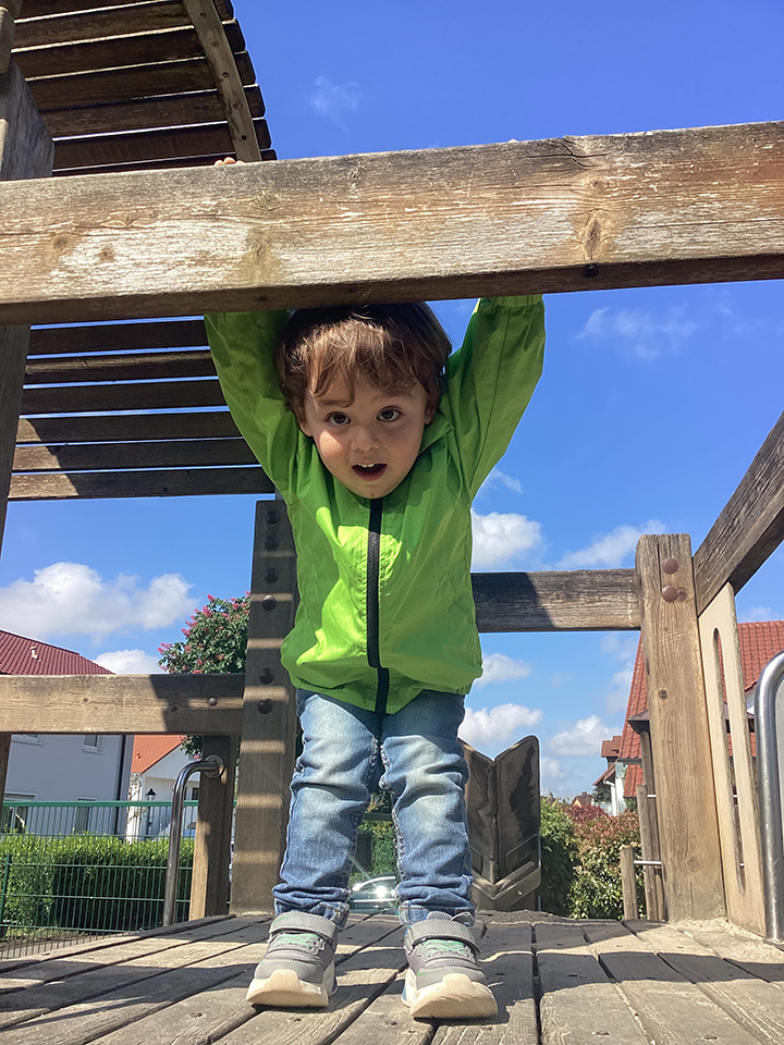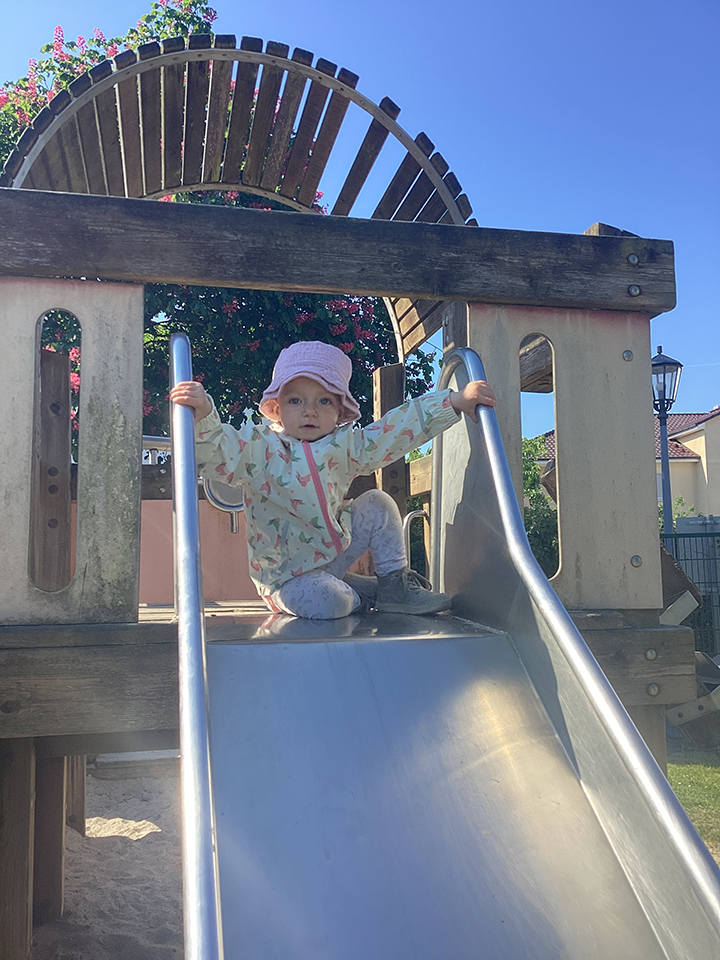 Im Mai hat sich das Wetter endlich von seiner besten Seite gezeigt – und wir haben jede Gelegenheit genutzt, um draußen aktiv zu sein. Besonders gerne verbringen wir unsere Tage auf den umliegenden Spielplätzen. Dort wird gerannt, gerutscht, geklettert und natürlich im Sand gespielt.
