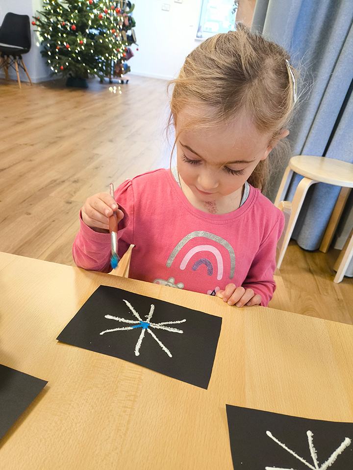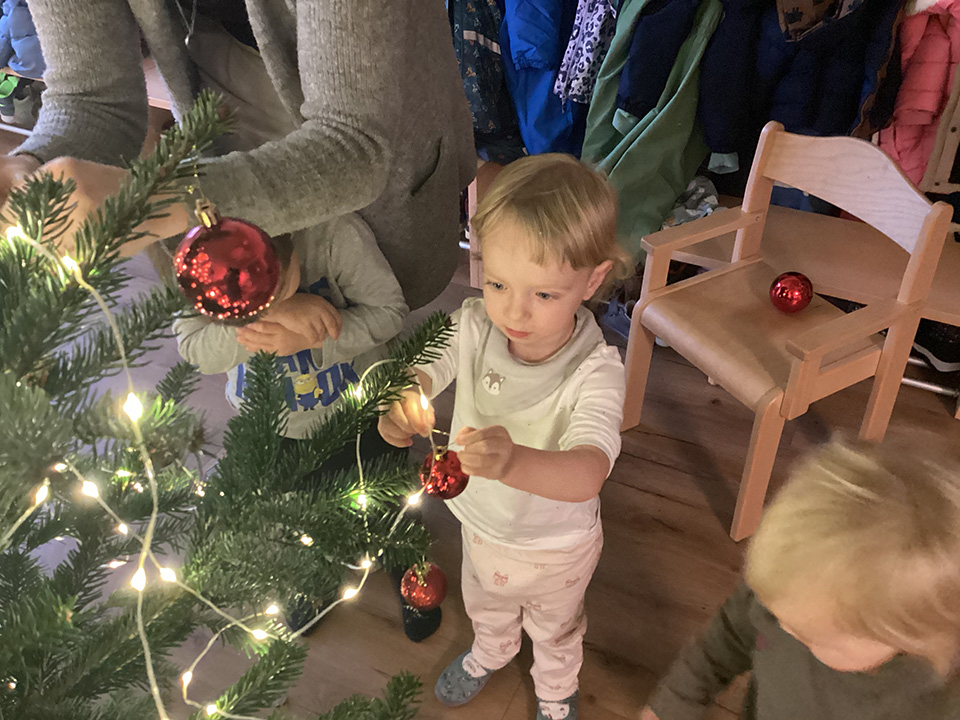 Die Weihnachtszeit verbrachten wir in Ruhe, umgeben von Lichterketten, Baumschmuck, spannenden Büchern und verschiedenen Spielmaterialien. Natürlich durfte auch das Plätzchenbacken nicht fehlen: Der herzliche Duft von frischen Butterplätzchen erfüllte die Kita und machte die Weihnachtszeit perfekt und gemütlich.