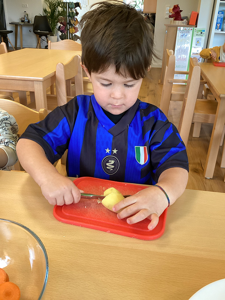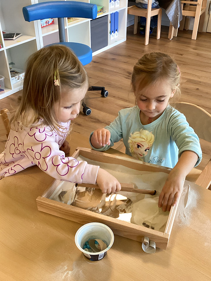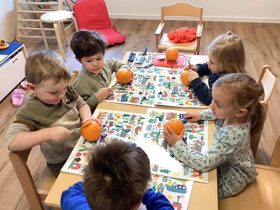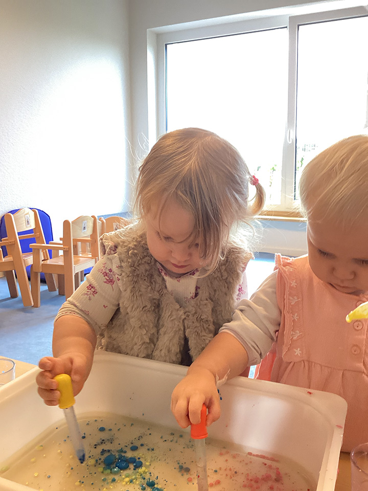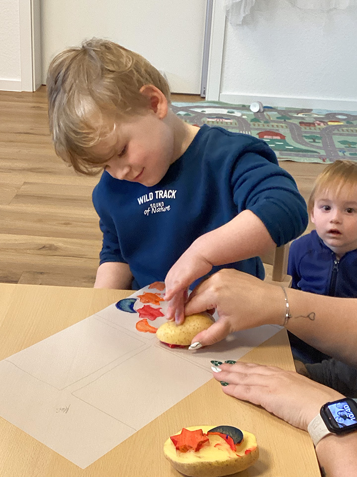 - Malen mit Fingerfarbe, Schneiden, Kochen und Backen – der Umgang mit Lebensmitteln gehörte zu unseren regelmäßigen Sinneserfahrungen.
