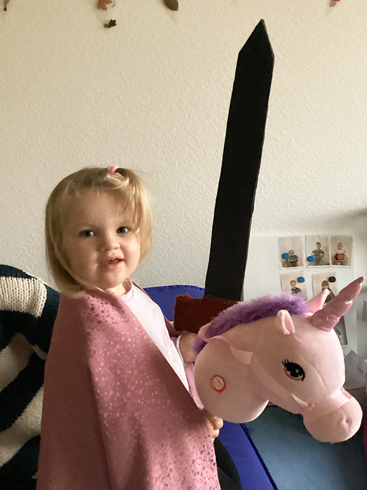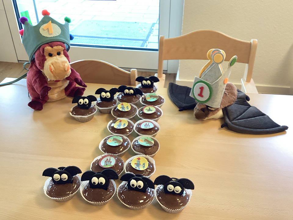 Ein weiteres Highlight war das 1-jährige Bestehen des Kinderhauses Schlosshüpfer. Dazu wurden selbstgemachte Muffins mit Fledermäusen, Rittern, Drachen und Schlössern dekoriert. Auch ein Besuch beim Bürgermeister und das Aufzugfahren durften nicht fehlen.
