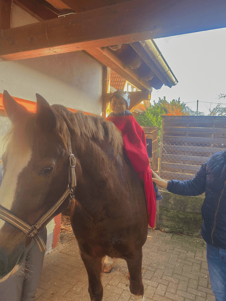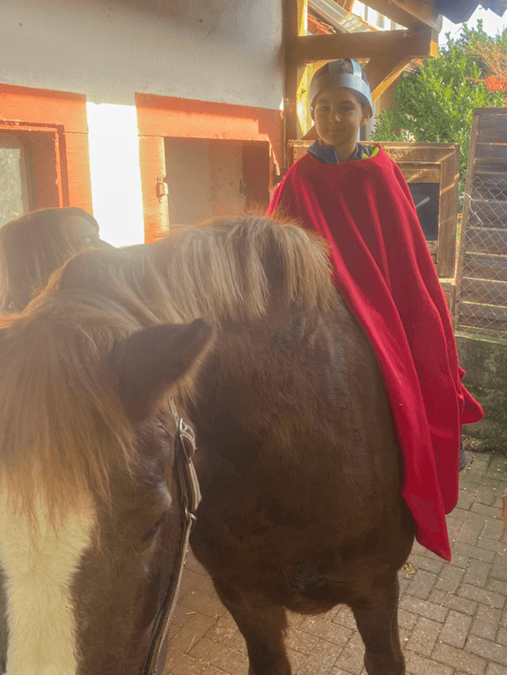 Ein besonderes Highlight war, dass sich die Kinder selbst wie St. Martin fühlen durften: Mit Mantel und Schwert durfte jedes Kind einmal auf dem Pferd sitzen. Das war ein ganz besonderes Erlebnis – einfach toll! ✨