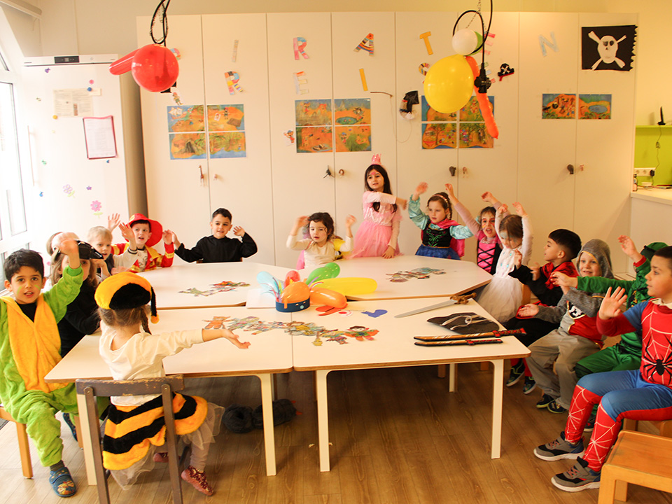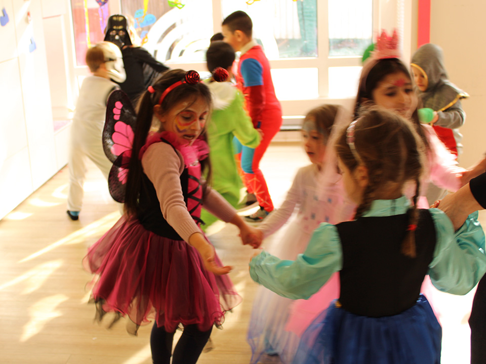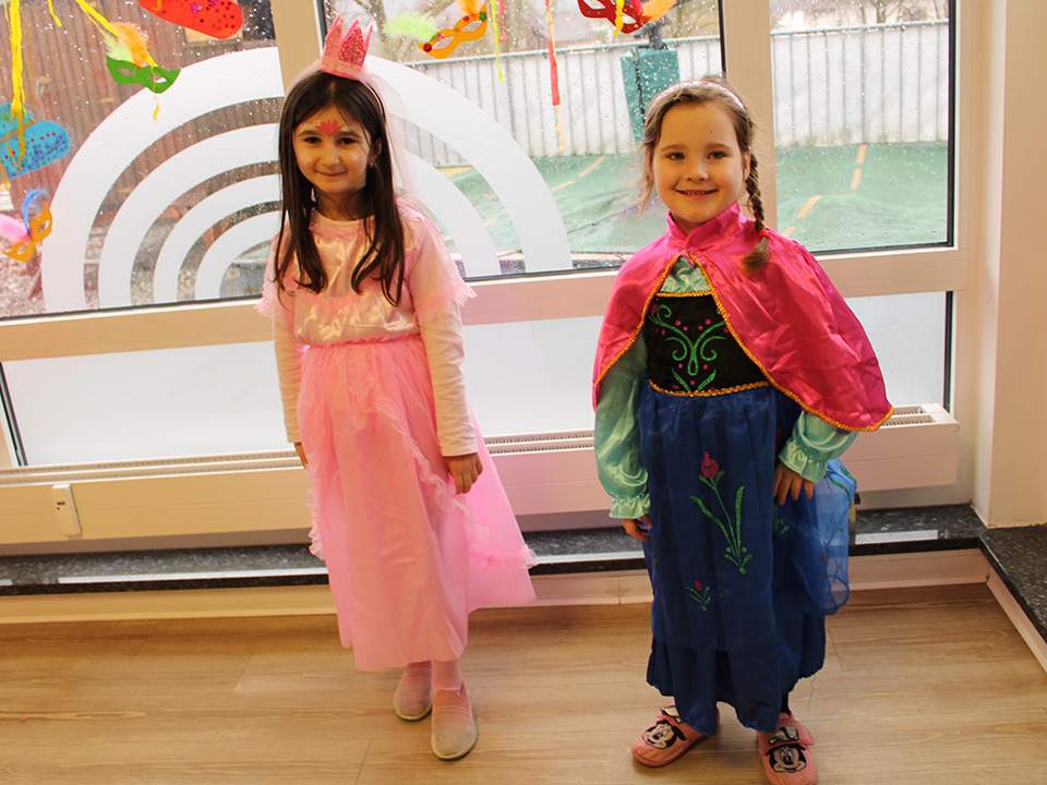 Gemeinsam sangen wir unsere eingeübten Lieder und führten stolz unsere Tänze auf. Bei einer großen Modenschau durfte jedes Kind sein Kostüm präsentieren – natürlich begleitet von viel Applaus und strahlenden Gesichtern. Anschließend wurden viele kleine Kunstwerke auf die Gesichter geschminkt: bunte Schmetterlinge, wilde Katzen und funkelnde Sterne.