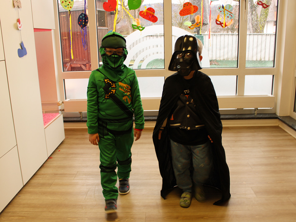 Dann war es endlich so weit: Die große Fastnachtsfeier stand vor der Tür! Schon am Morgen kamen alle Kinder verkleidet in den Kindergarten. Es gab mutige Feuerwehrmänner, starke Superhelden, elegante Prinzessinnen, geheimnisvolle Ninjas und fleißige Bienchen. Man musste manchmal zweimal hinschauen, um jedes Kind zu erkennen.