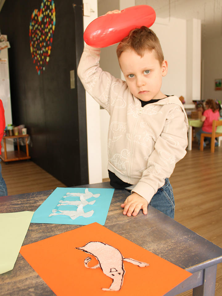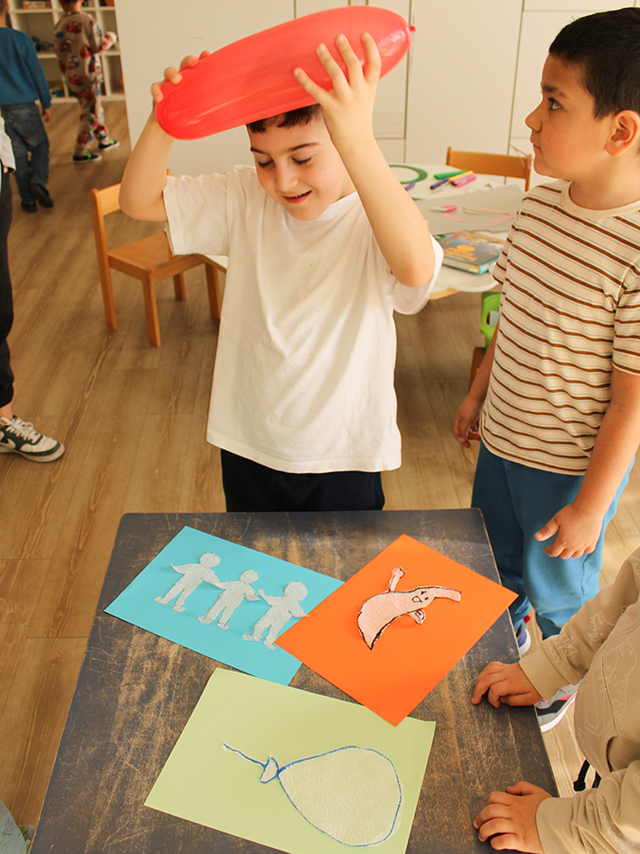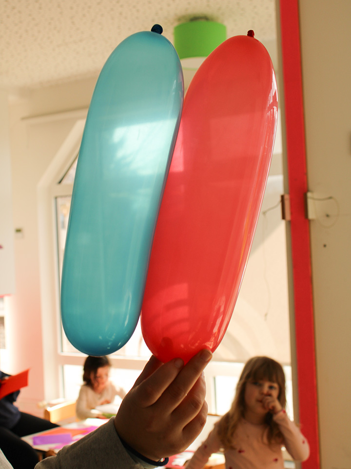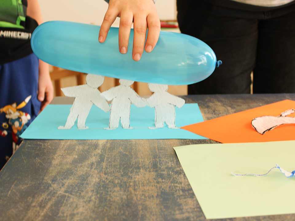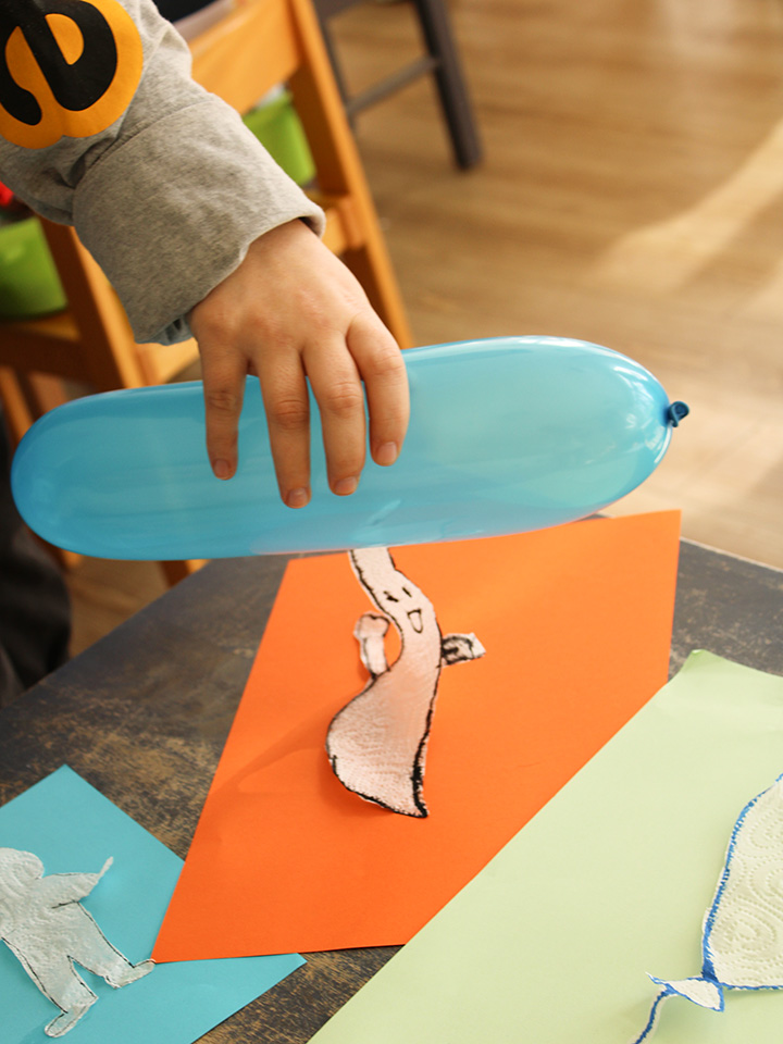 Als wir die Ballons über die Papierfiguren bewegten, passierte etwas Erstaunliches: Die kleinen Männchen und Gespenster begannen sich zu bewegen, als würden sie dem Luftballon hinterherfliegen.