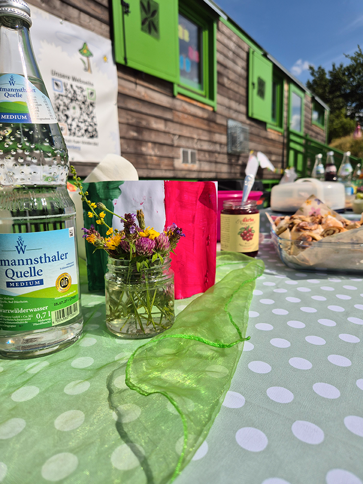Am Donnerstag, den 17. Juli, wurde es bei strahlendem Sonnenschein feierlich im Wald- und Naturkindergarten Zauberberg: Wir luden alle Familien herzlich zu unserem internationalen Sommerfest ein. In den Tagen zuvor bereiteten wir gemeinsam mit den Kindern die Dekoration vor. Es entstanden bunte Wimpelketten mit Flaggen verschiedenster Länder.