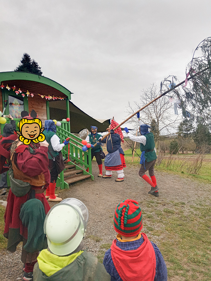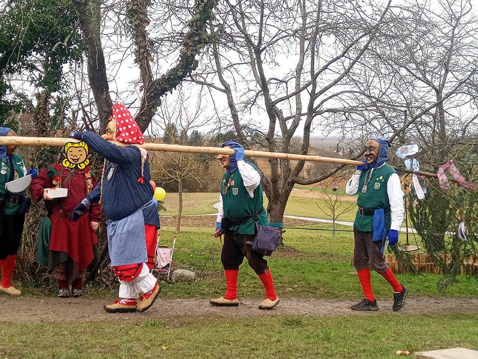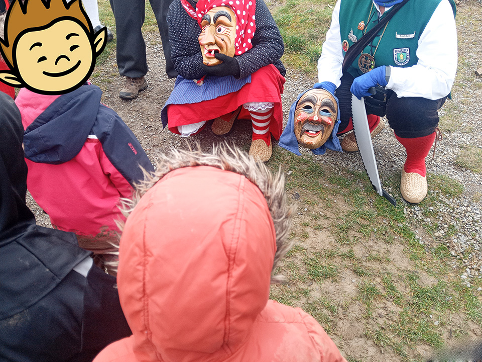 Am Schmutzigen Donnerstag kochten wir gemeinsam eine leckere Bohnensuppe und feierten anschließend eine fröhliche Kinderdisco. Am Freitag bekamen wir Besuch von den Narren. Sie brachten uns einen Narrenbaum mit und feierten gemeinsam mit uns die Fasnacht. Es wurde getanzt, gelacht und gesungen. Am Rosenmontag fand schließlich unser großes Fasnachtsbuffet statt. Es gab viele leckere Speisen, die wir uns gemeinsam schmecken ließen. Außerdem wurden die Kinder mit Kinderschminke in bunte Tiere verwandelt.