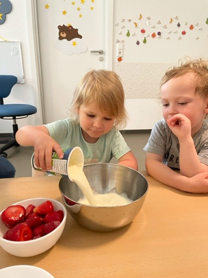 In unserem Körperprojekt haben wir nicht nur Spannendes über unseren Körper gelernt, sondern ihn vor allem mit allen Sinnen entdeckt! Mit abwechslungsreichen Angeboten wie Klanggeschichten, Duft Experimenten, Backen, Fühlboxen, Tast- und Gehörmemory sowie Bewegungsangeboten konnten die Kinder spielerisch ihre Sinne erforschen. Highlights waren, unser Ausflug aufs Erdbeerfeld und der Besuch im Barfußpark, die allen viel Freude bereitet haben. Ein wunderbares und lehrreiches Projekt voller Spaß und neuen Erfahrungen.
