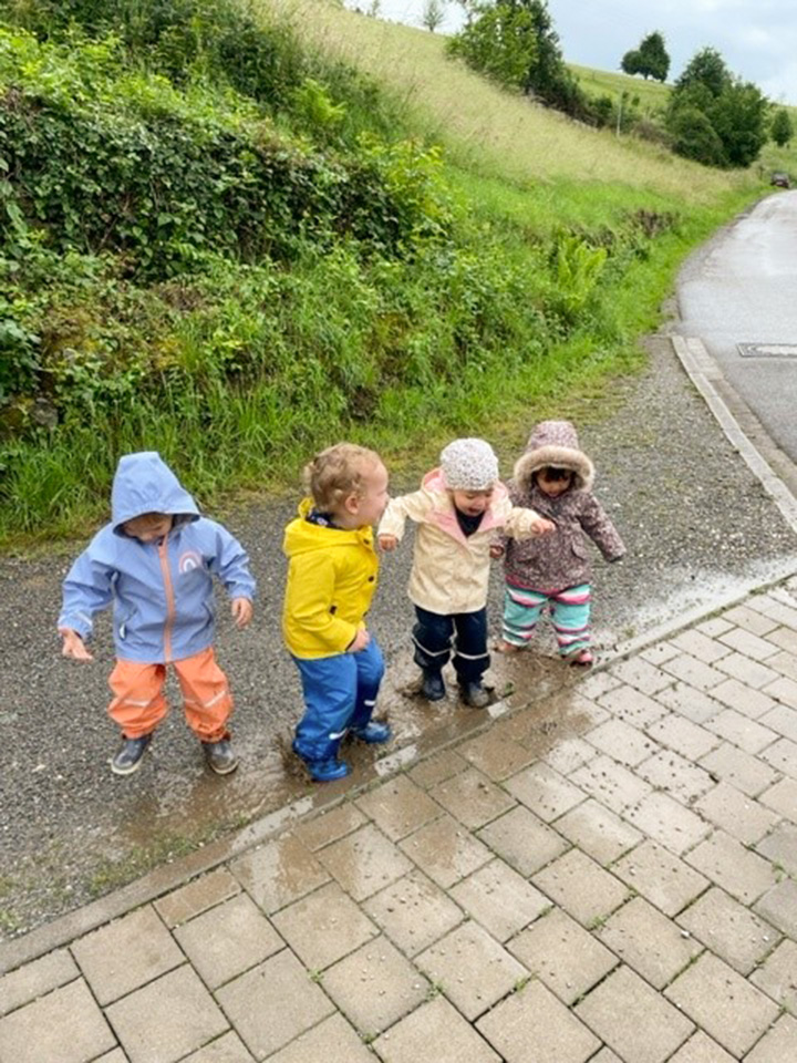Im Rahmen unseres Feuerwehr-Projekts haben wir gemeinsam mit den Kindern verschiedene Aktivitäten durchgeführt. Zu Beginn haben wir ein Bilderbuch betrachtet, und die Kinder erhielten einen Stempel-Feuerwehrpass, mit dem sie die verschiedenen Stationen des Projekts verfolgten: einen Stempel für den Theorieteil, einen fürs Experimentieren, einen fürs Tiere retten und einen fürs Dosenwerfen. Der Feuerwehrpass begleitete uns über die gesamten Wochen des Projekts. Wir haben gebastelt, gebacken, mit Feuer und Wasser experimentiert und durften sogar die Feuerwehr in Welschensteinach besuchen. Dort haben wir die Feuerwehrwache besichtigt und eine sehr liebevolle Erklärung von unserem Feuerwehr-Papa erhalten. Zum Abschluss gab es ein thematisch passendes Buffet. Die Kinder hatten dabei viel Freude, was das Projekt zu einem rundum gelungenen Erlebnis machte.