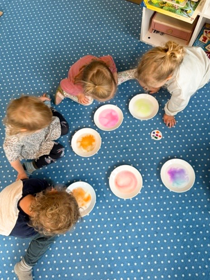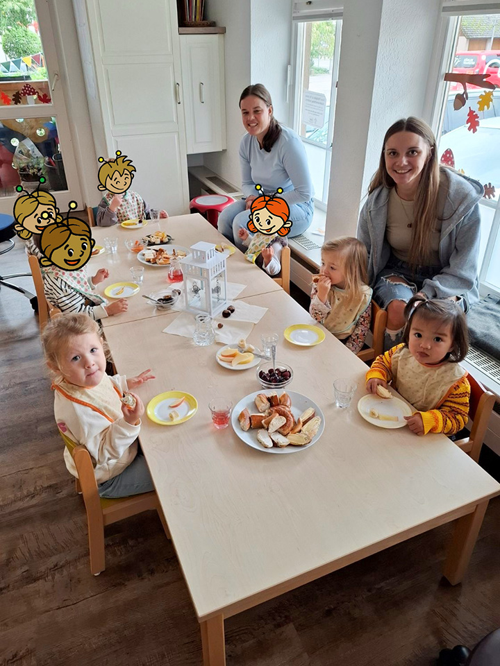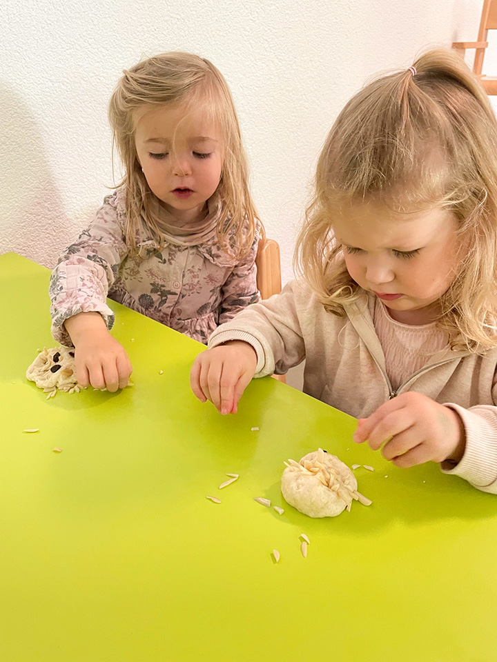 Unsere Osterfeier begann mit einem liebevoll vorbereiteten buffet, ein echtes Highlight für die Kinder. Danach machten wir uns gemeinsam auf die Suche nach dem versteckten Osternest, das der Osterhase zuvor mit einem Brief angekündigt hatte. Begleitet wurde diese Zeit von Liedern, Fingerspielen und vielfältigen Frühlings – und Osterangebote. Wir haben gesät, gebacken, gebastelt und bei unseren täglichen Spaziergängen beobachtet, wie sich die Natur im Frühling verändert. Was für eine schöne Frühlings- und Osterzeit!