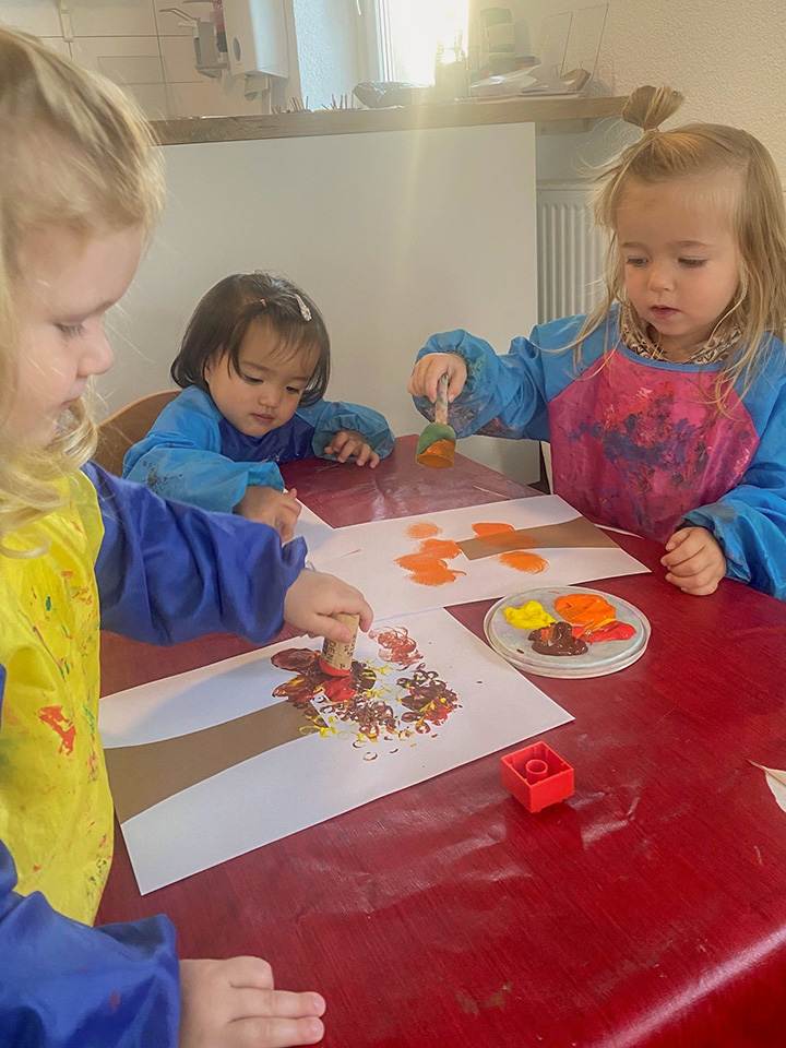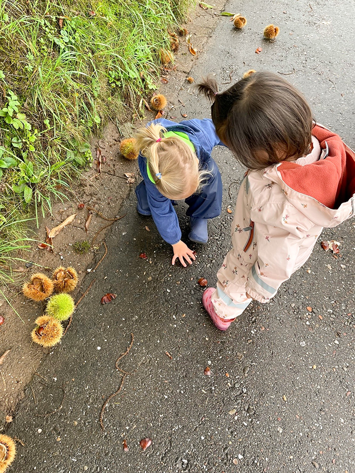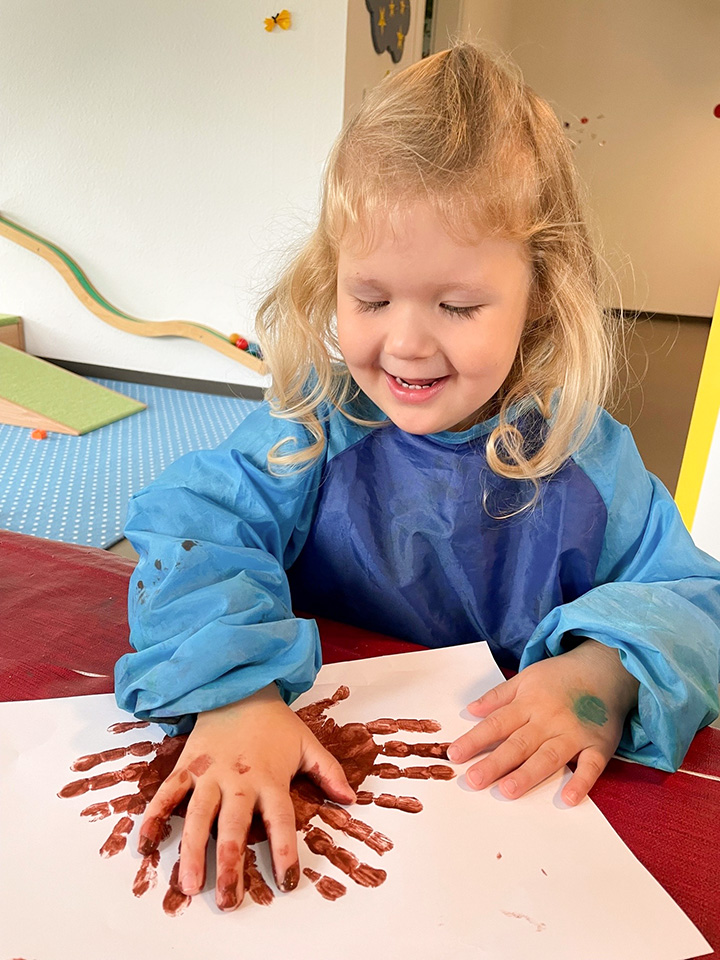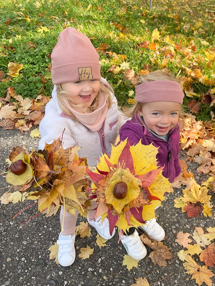 Der Herbst war eine wunderbare und erlebnisreiche Zeit! Auf unseren Spaziergängen sammelten wir Kastanien, bunte Blätter und andere Naturmaterialien. Daraus entstanden Igel, Bäume, Kastanienmännchen und fröhliche Blättermännchen. Mit viel Freude gestalten wir Figuren aus Salzsteig und backten kleine Igel aus Quark-Öl-Teig. Auch lustige Fingerspiele, Lieder und Geschichten begleiteten uns durch diese bunte Jahreszeit. Die Kinder erlebten die Natur mit allen Sinnen, stärkten beim Basteln, Kochen, Kneten und Backen ihre Feinmotorik, entfalteten ihre Kreativität und hatten viel Freude am gemeinsamen Tun. Ein bunter Herbst voller Farben, Entdeckungen und Lernen.
