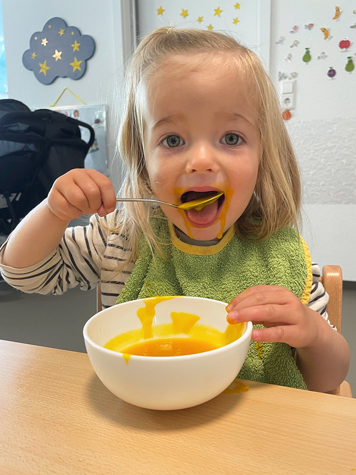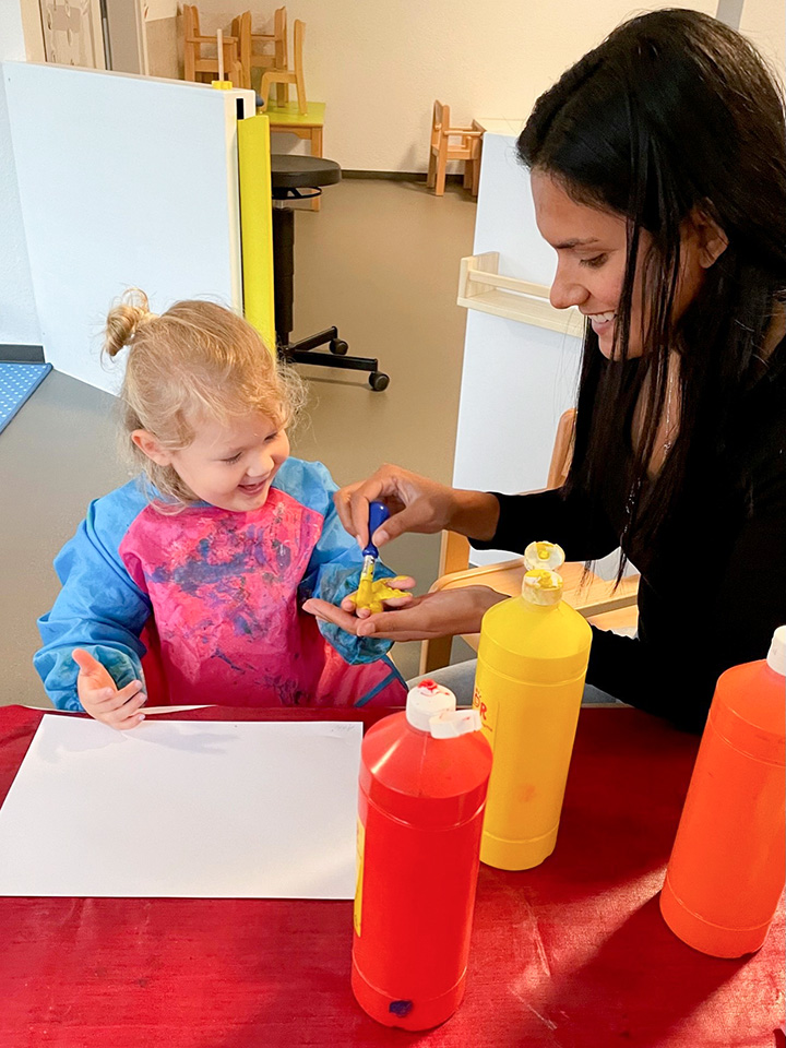 Jedes Kind ist individuell. Unterschiedliche Herkunft und damit auch andere Familienformen bringen für uns individuelle Bedürfnisse der Kinder mit. Wir haben die Aufgabe, diese Bedürfnisse wahrzunehmen und eine Gemeinschaft mit den Kindern herzustellen und zu leben. Wir sind auf Augenhöhe mit den Kindern. Die Kinder sind von Geburt an neugierig, um sich ihre Welt zu erschließen. Sie erforschen eigenständig und wir als Fachkräfte unterstützen den Entdeckungsdrang, fördern die Selbsttätigkeit und die Autonomie der Kinder. Wir sind Wegbegleiter und leben einen liebevollen und wertschätzenden Umgang mit ihnen.