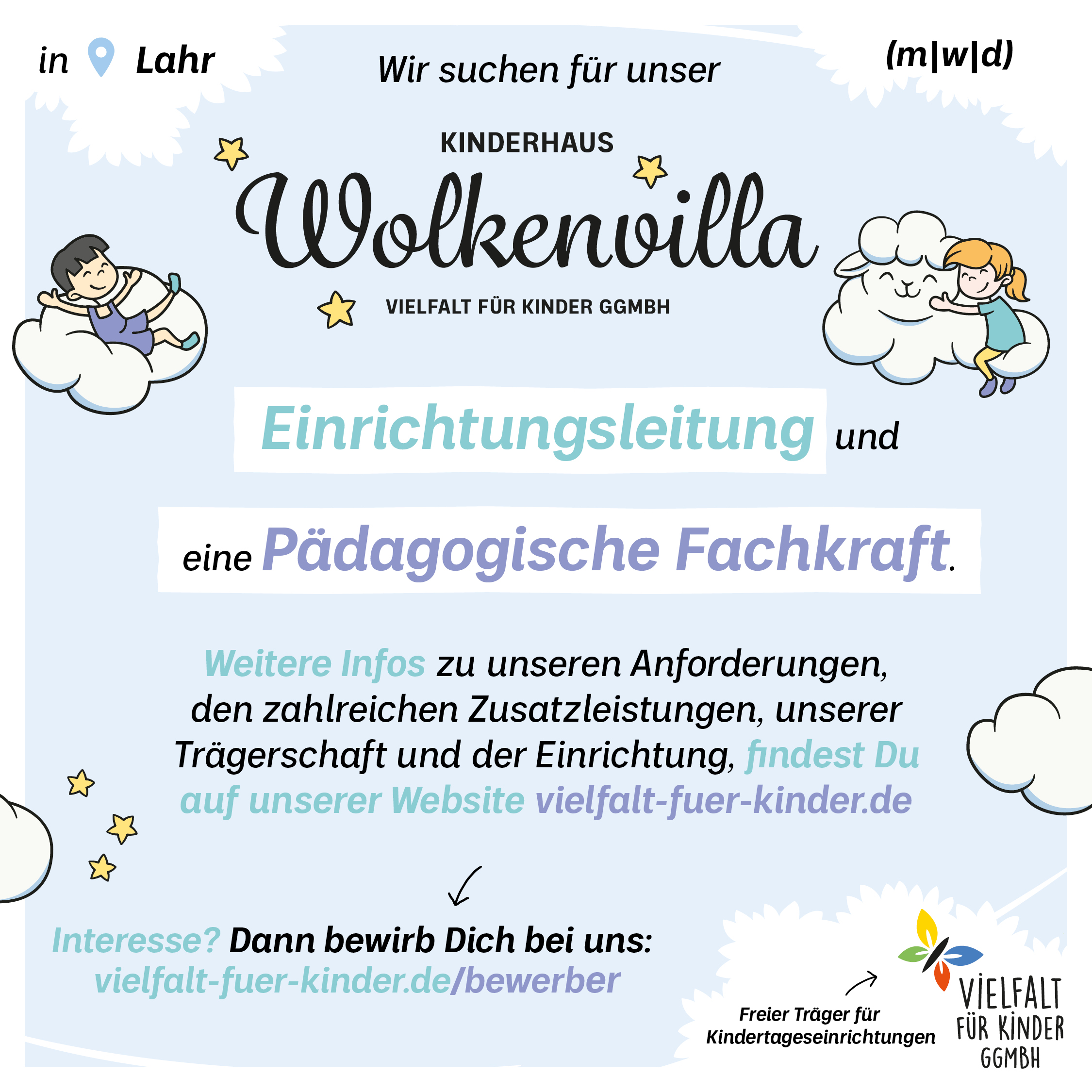 Dann schau bei unsererem Mutterunternehmen Mehr Raum für Kinder gGmbH vorbei!