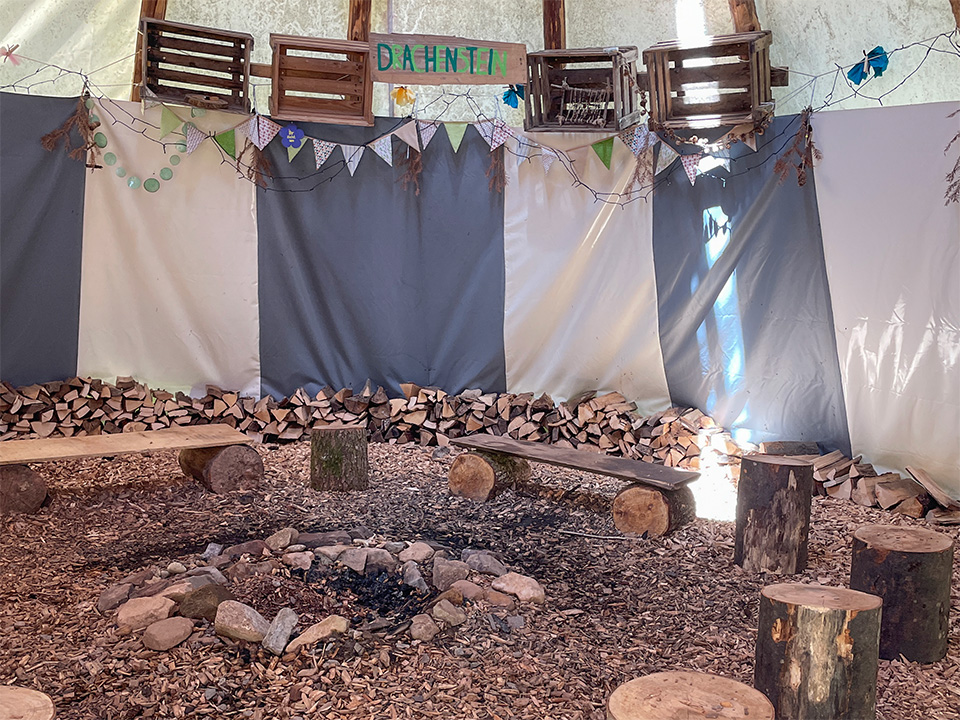 Mit dem Wald- und Naturkindergarten Drachenstein in Seelbach realisieren wir als Vielfalt für Kinder gGmbH, eine Einrichtung, die für die Gemeinde, für Sie als Erziehungsberechtigte und für Ihre Kinder etwas Besonderes ist. Mitten im Grünen, zwischen den Wäldern am Tretenbach, findet sich unser Platz wieder. Unser großes Tipi mit Feuerstelle und der lange Hobbit machen unsere Platz unverfehlbar. Die Kinder sind mit unseren pädagogischen Fachkräften oft unterwegs, um kleine Abenteuer zu erleben und die Natur zu erkunden und ganz viel zu lernen. Die Liebe und der Respekt vor der Natur sind Grundvoraussetzungen für den verantwortungsvollen Umgang der Kinder mit den Pflanzen und Lebewesen im Wald. Deswegen verbringen wir die meiste Zeit im Freien, ganz nach dem Motto: „Es gibt kein schlechtes Wetter, sondern nur schlechte Kleidung“.