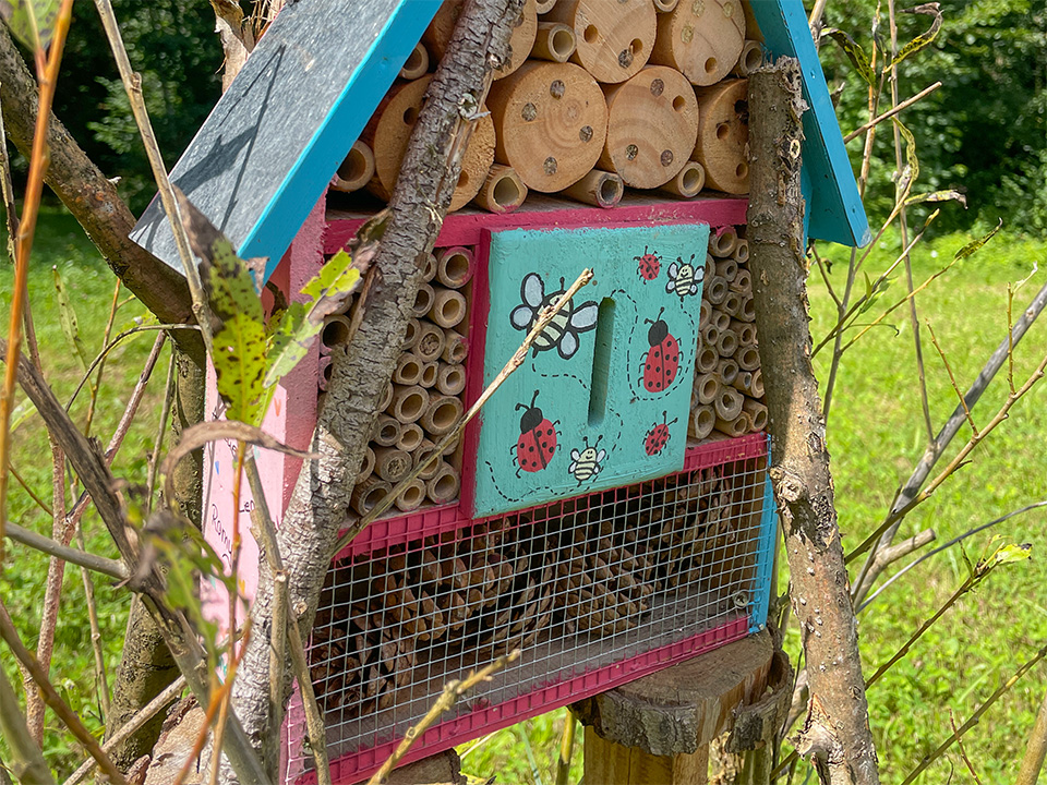 Besonders spannend war das Kochen über dem Feuer. Aus Waldbeeren haben wir eine leckere Waldbeerenmarmelade zuzubereiten. Auch die Bäume standen im Mittelpunkt. Es wurde gesammelt, was sie uns alles schenken, ein buntes Naturmandala gelegt und sich bei einem Spiel selbst in einen Baum verwandelt. Manche Kinder wurden dabei zu einem Nadelbaum, andere zu einem Laubbaum. Beim kreativen Bauen entstand aus Ästen und Laub ein richtiges Waldsofa. Die Kinder haben richtig fleißig mitgeholfen und großartige Äste dafür gefunden. Zum Abschluss der Woche sind wir mit den Becherlupen auf Entdeckungsreise gegangen und haben viele kleine Waldbewohner aus nächster Nähe beobachtet - das war spannend.