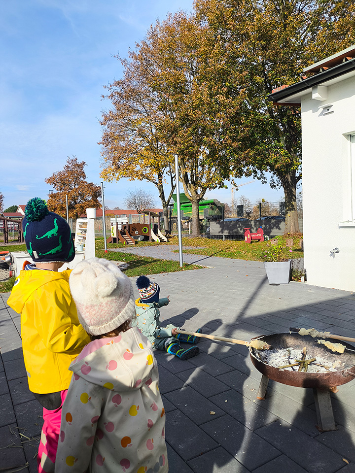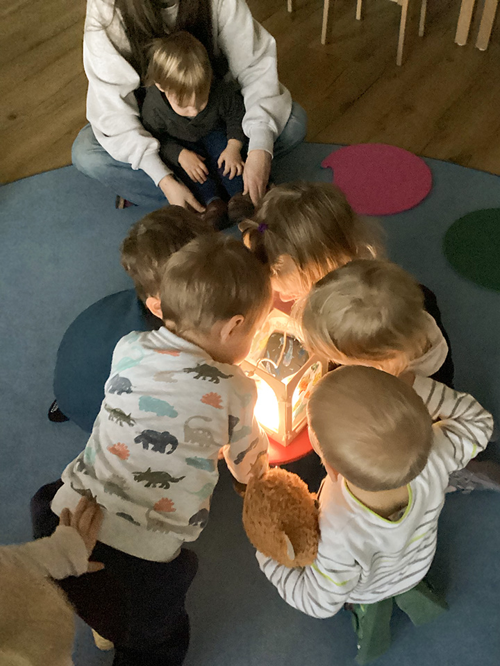 Die Zeit der Ruhe und Lichter ist bei uns angekommen: Laternen basteln. Spiele zum St. Martin/Lichterfest üben, mit Musikinstrumenten, Pferd und Schwert. Stockbrot in der Feuerschale backen und Stöcke schnitzen. Gemeinsam mit den Familien feierten wir so unser St. Martin- und Lichterfest – eine stimmungsvolle Mischung aus Bewegung, Kreativität, Musik und gemeinsamer Zeit.
