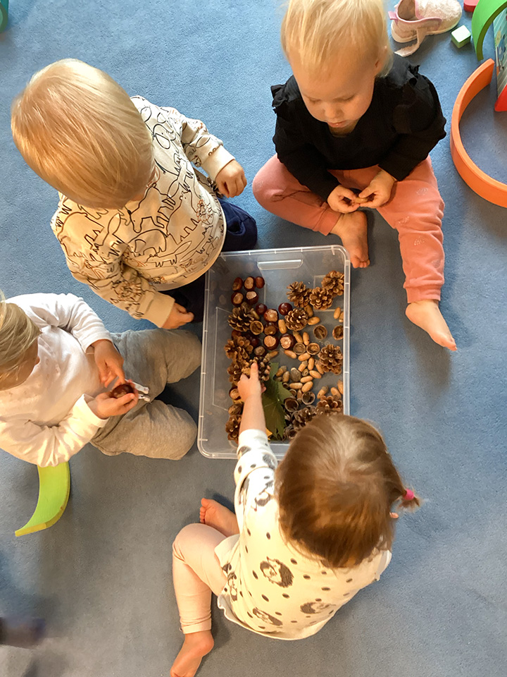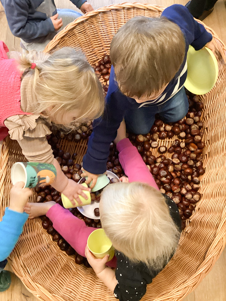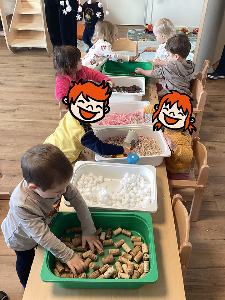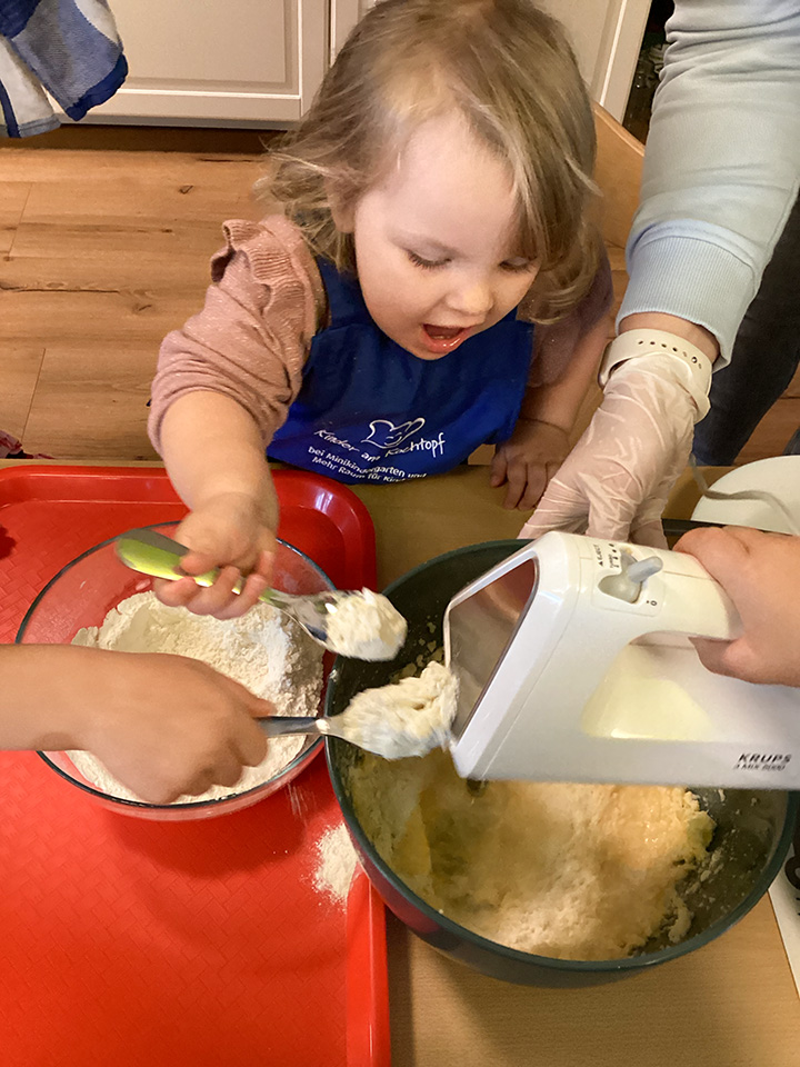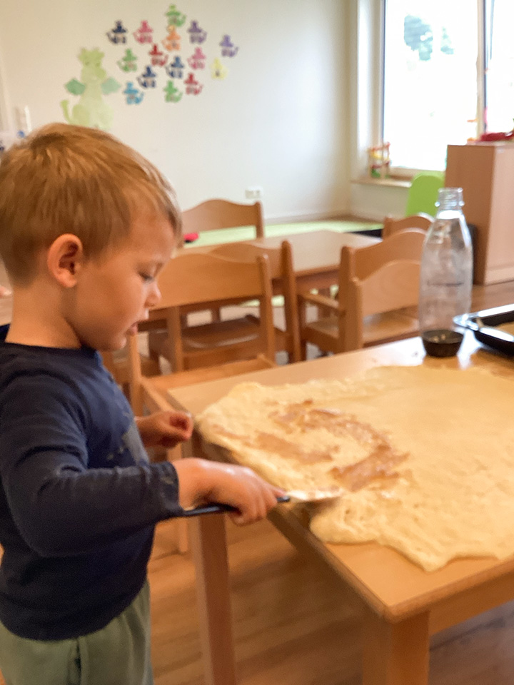 - Malen mit Fingerfarbe, Schneiden, Kochen und Backen – der Umgang mit Lebensmitteln gehörte zu unseren regelmäßigen Sinneserfahrungen.