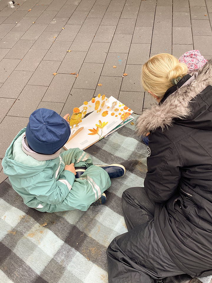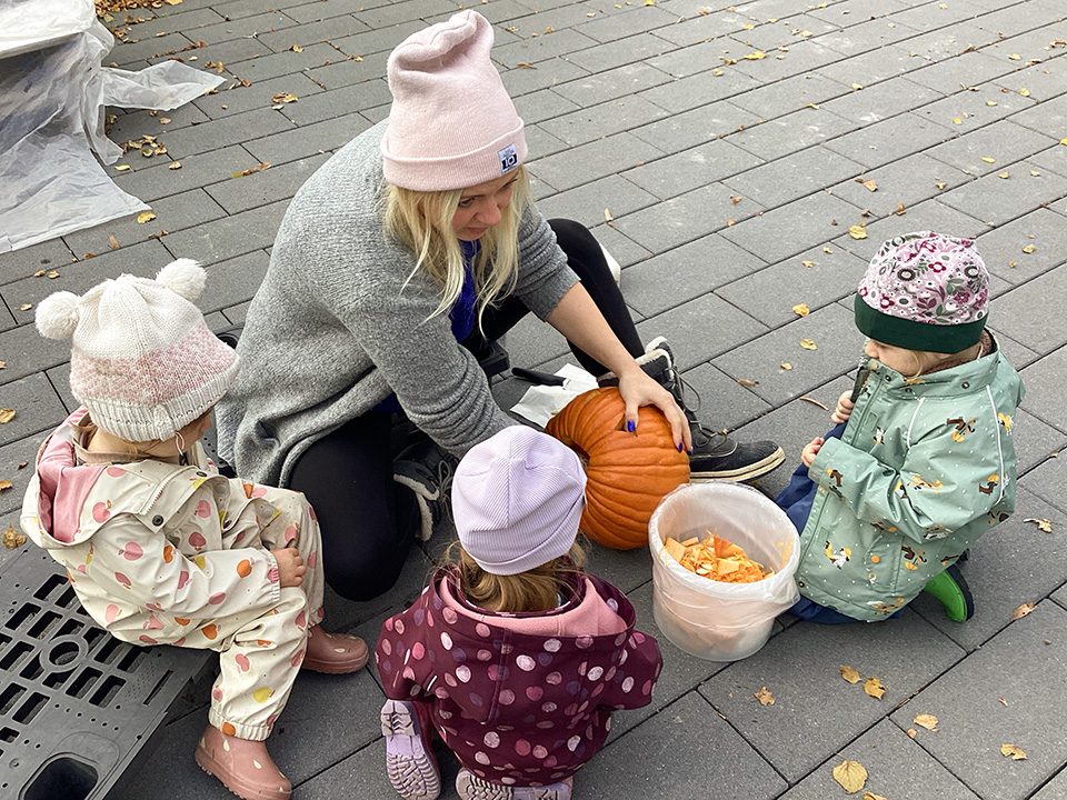 Die Herbstzeit begann und damit auch die Zeit der Kürbisse, Regen und Matsch – die wir draußen ausgiebig genossen haben. Wir sprangen in Pfützen, beobachteten Regenwürmer und Schnecken und tanzten auch bei Regen. Viele kreative Ideen wurden umgesetzt: