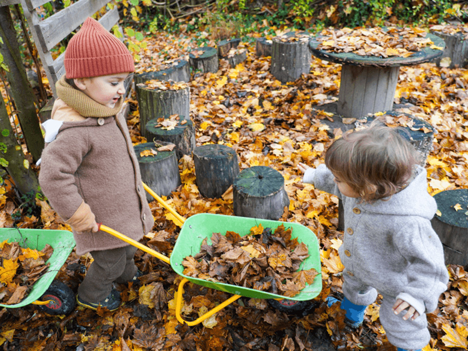 Der Herbst mit seinen bunten Blättern bietet uns viele wunderbare Spielmöglichkeiten. Gemeinsam liefen wir über raschelnde Blätter, hörten ihr Knistern unter unseren Füßen und genossen das herbstliche Gefühl. Mit Rechen sammelten wir die Blätter ein und transportierten sie mit der Schubkarre zu einem großen Haufen. Dort entstand ein gemütliches Blätterversteck – vielleicht als Winterquartier für einen Igel.
