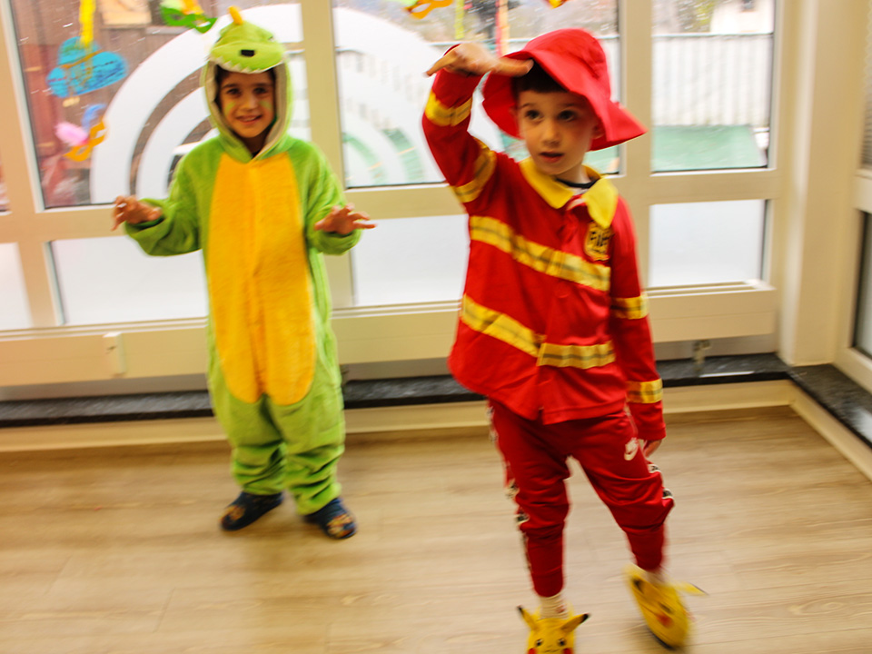 Dann war es endlich so weit: Die große Fastnachtsfeier stand vor der Tür! Schon am Morgen kamen alle Kinder verkleidet in den Kindergarten. Es gab mutige Feuerwehrmänner, starke Superhelden, elegante Prinzessinnen, geheimnisvolle Ninjas und fleißige Bienchen. Man musste manchmal zweimal hinschauen, um jedes Kind zu erkennen.