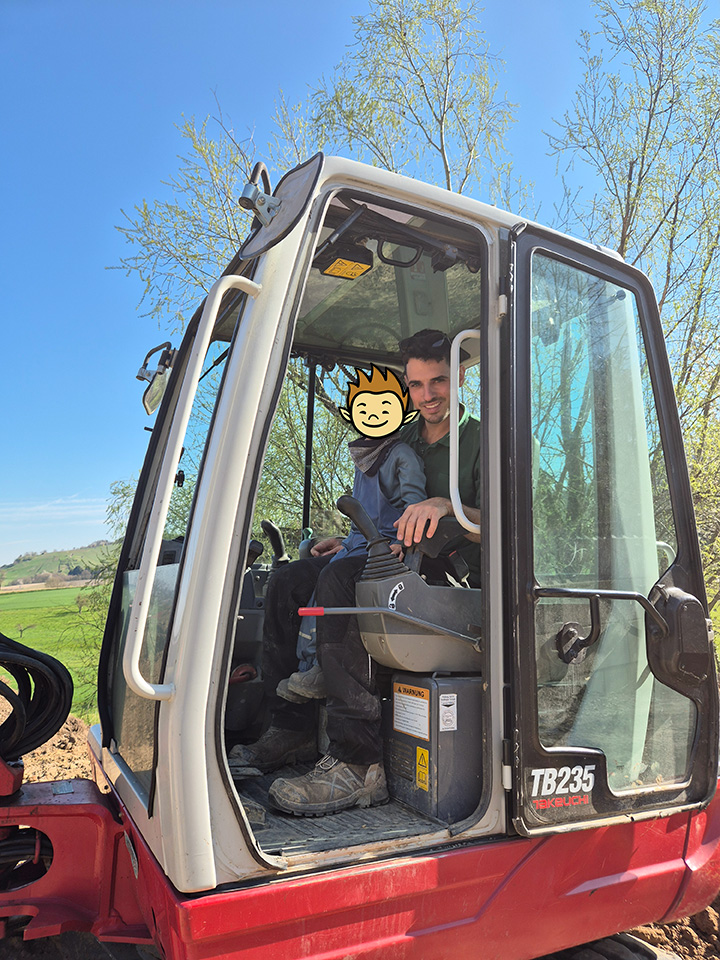 Im Zuge unseres mehrwöchigen Dorfprojektes haben die Kinder aus dem Wald – und Naturkindergarten Zauberberg viele Interessante orte in Hofweier kennengelernt. Unsere Höhepunkte waren allerdings die Ausflüge in die Baufirma Feger und zum Kanalservice Riedinger. Der erste Besuch war bei der Baufirma Feger. Dort konnten die Kinder allerlei Baustellenfahrzeuge bestaunen. Auch „Baggertypen“, die sie so im Alltag nicht sehen würden. Aufregend wurde es für die Kinder aber auch für die Erzieherinnen da sie in einem Bagger sitzen und ihn sogar lenken durften. Das war ein Spaß!