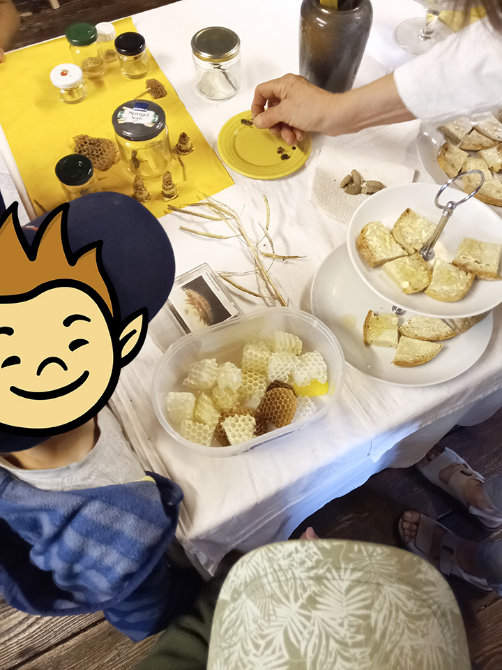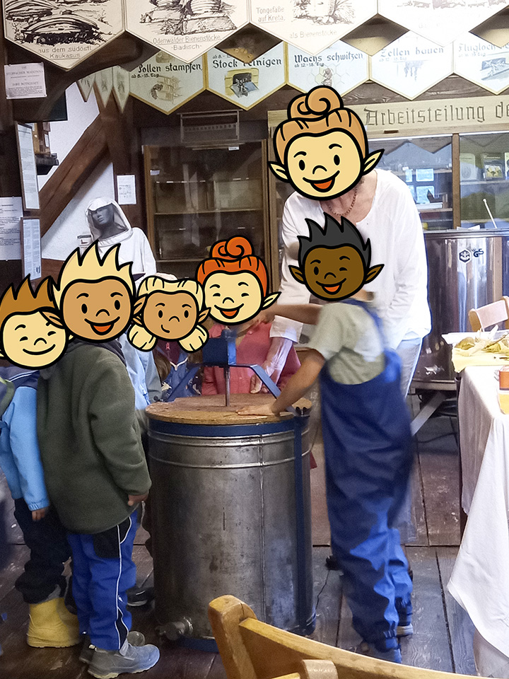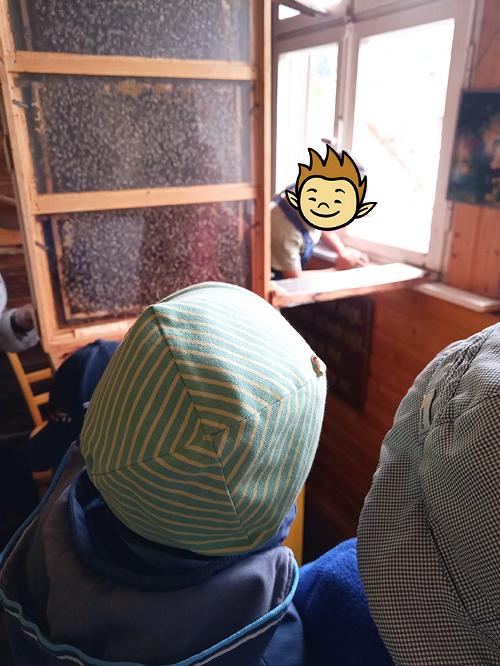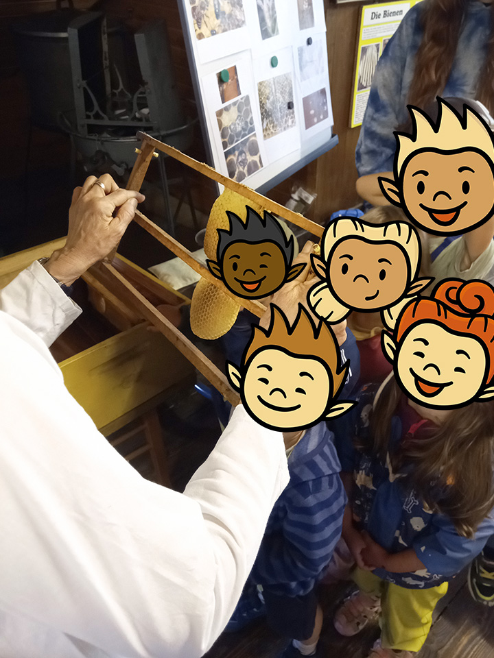 Am nächsten Tag haben die Kinder eine kleine Blumenwiese ausgesät, um für die Bienen eine Futterquelle bereit zu stellen. Am Mittwoch sind wir dann ins Bienenmuseum Hohberg gegangen. Dort haben wir noch weitere wichtige und spannende Informationen dazugelernt. An dieser Stelle möchten wir uns für die tolle Führung bedanken! Auch das Treiben in einer Bienenwabe war ein Thema, welches wir im Zuge eines Kreativangebots behandelten. Zum Abschluss am Freitag bekam jedes Kind ein Stück frisches Brot und Honig aus der Region zum probieren. Unsere Kinder haben in der Woche vieles dazugelernt und wissen nun über die Wichtigkeit unserer kleinen Bienenfreunde bescheid.