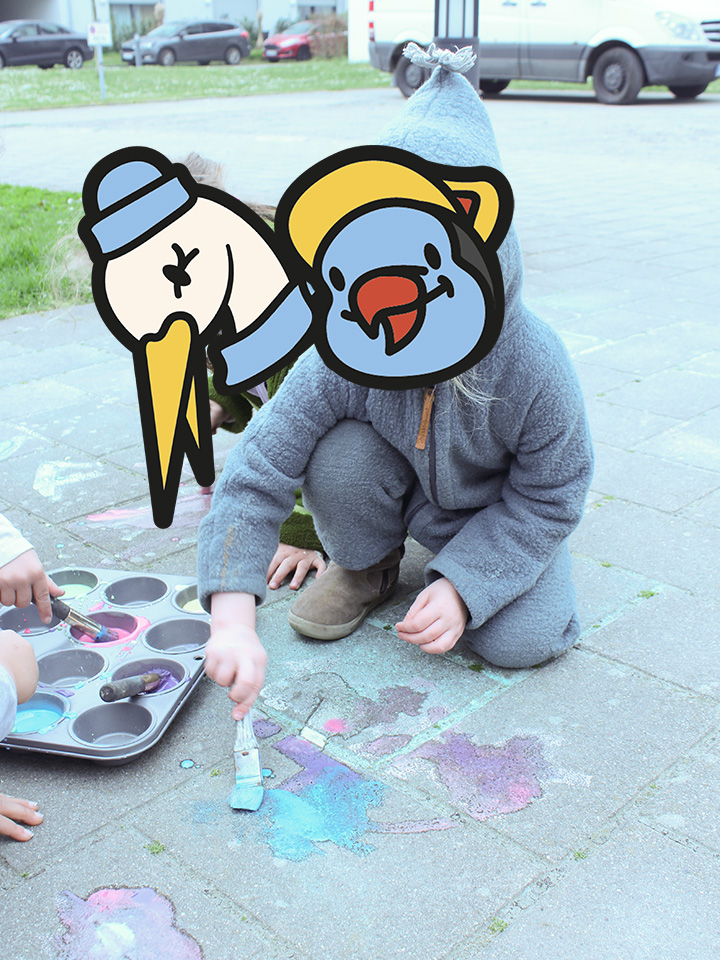 Pünktlich zum Frühlingsstart haben wir gemeinsam mit den Kindern Wasserfarben im Innenhof hergestellt. Mit einer Mischung aus Speisestärke, Wasser und Lebensmittelfarbe konnten unsere kleinen Künstler ihre kreativen Ideen auf dem Boden zum Leben erwecken. Der Innenhof wurde in ein wahres Kunstwerk verwandelt, und dabei sind viele wunderschöne, bunte Bilder entstanden. Wir sind schon ganz gespannt, welche weiteren kreativen Abenteuer der Frühling noch für uns bereithält.