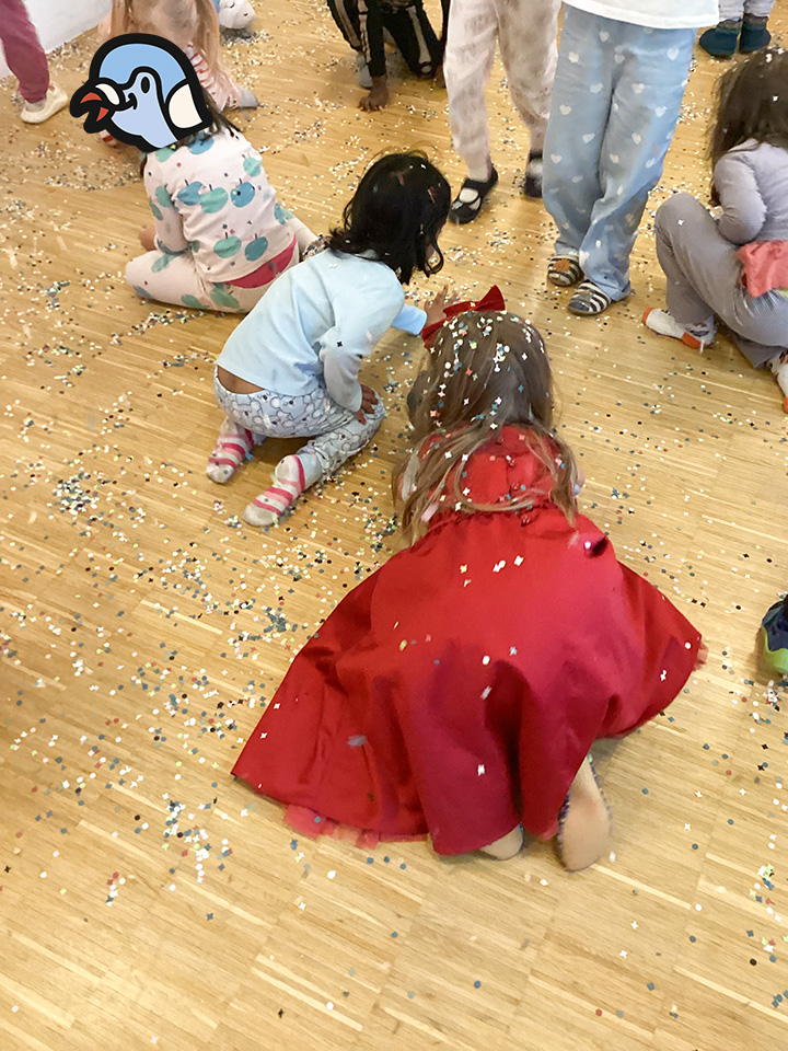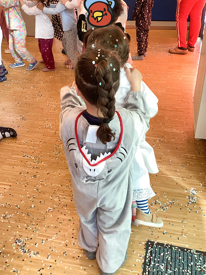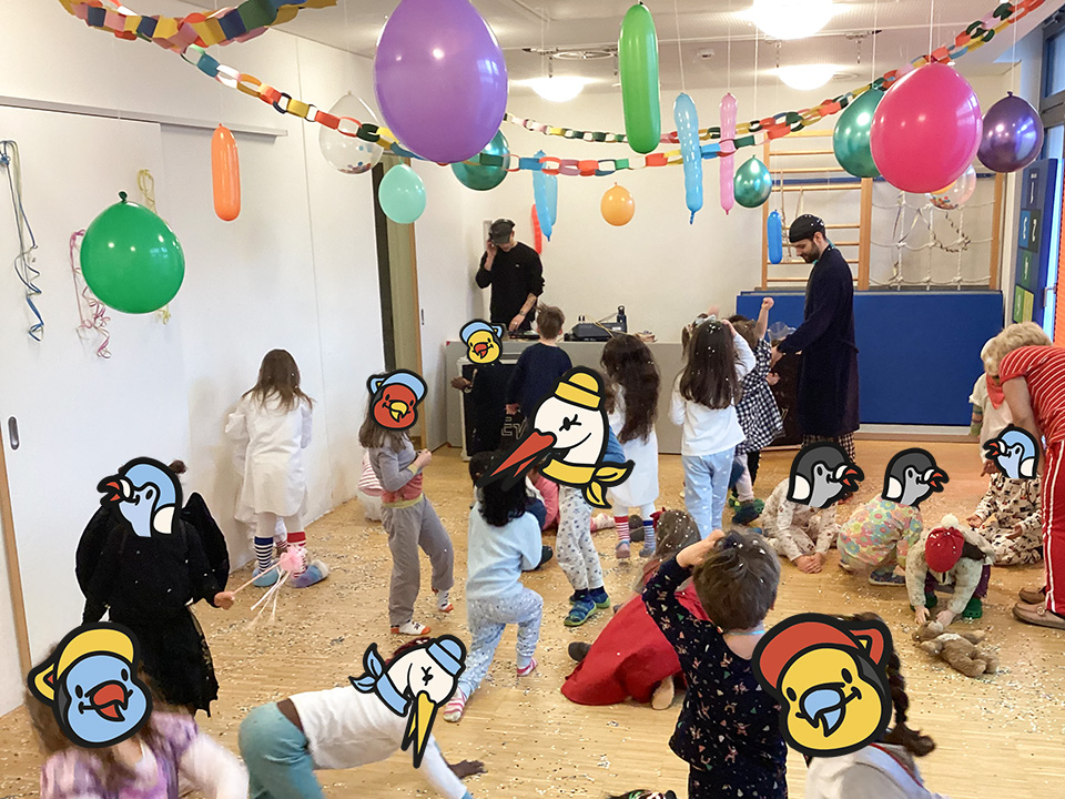 Im Kinderhaus Zugvögel wird Fastnacht mit viel Freude und Begeisterung gefeiert! Die Turnhalle verwandelt sich in einen echten Partyraum, in dem die Kinder ihre eigenen Süßigkeiten basteln, die später in die Menge geworfen werden. Unser DJ sorgt mit fröhlicher Musik für die richtige Partystimmung, und natürlich darf ein Konfettiregen nicht fehlen!