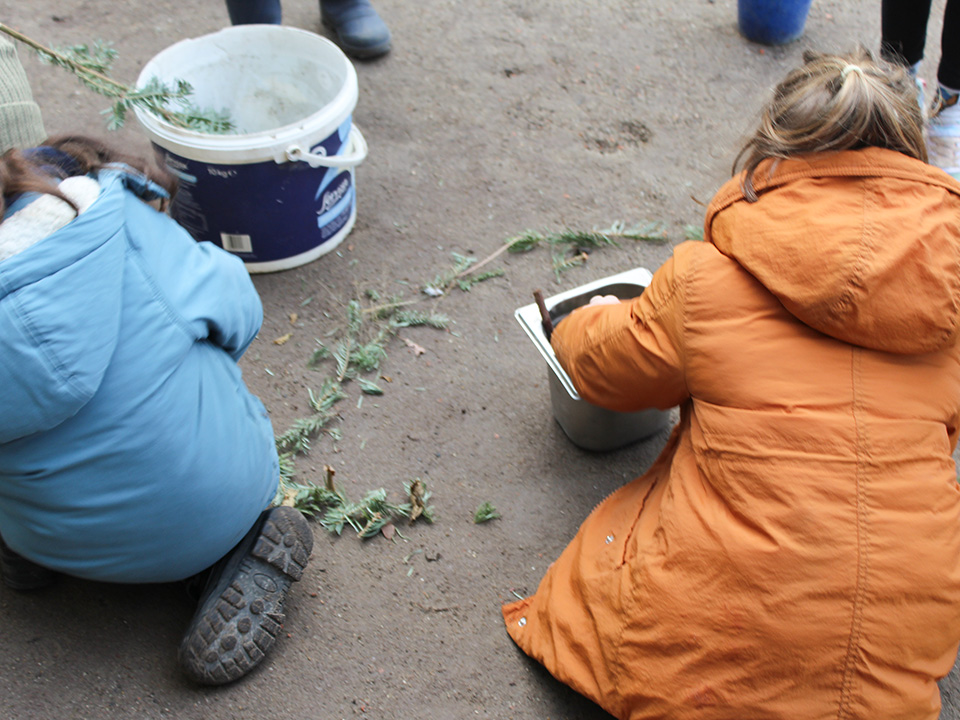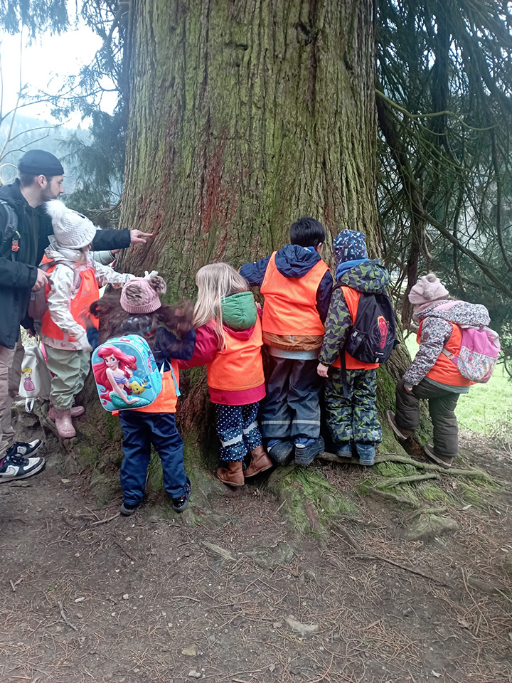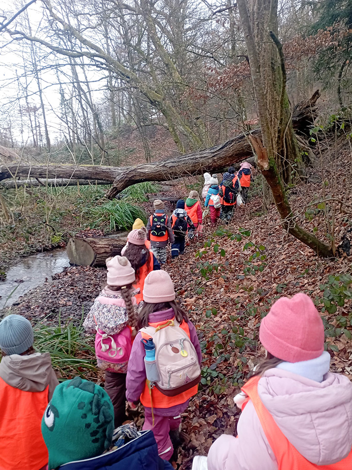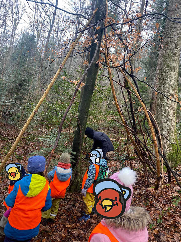 Trotz des matschigen und kalten Wetters sind die Kinder schon im Januar unterwegs und erkunden den Wald. Dabei gibt es viele spannende Sachen zu entdecken wie zum Beispiel Tierspuren finden, den Geräuschen des Waldes lauschen, Tippis bauen und aus Naturmaterialien Mandalas legen. Dabei sind großartige Kunstwerke entstanden. Heute hatten wir die Aufgabe ein Rätsel zu lösen. Die Kinder durften Geräuschen lauschen, welche sie dann den Bildkarten mit passendem Symbol darauf zugeordnet haben. Wir freuen uns schon auf den nächsten Waldbesuch und sind gespannt was uns noch erwartet.