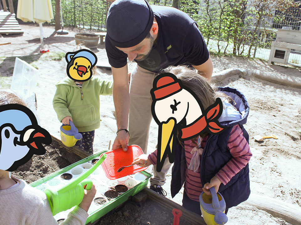 Neben der spannenden Ostereiersuche wurde bei den Zugvögeln auch die Wassersaison im Garten eröffnet. Es wurde viel gematscht und experimentiert. Und der April wurde außerdem für viele kreative Bastelangebote im Freien genutzt – es gab also jede Menge zu entdecken und zu gestalten!